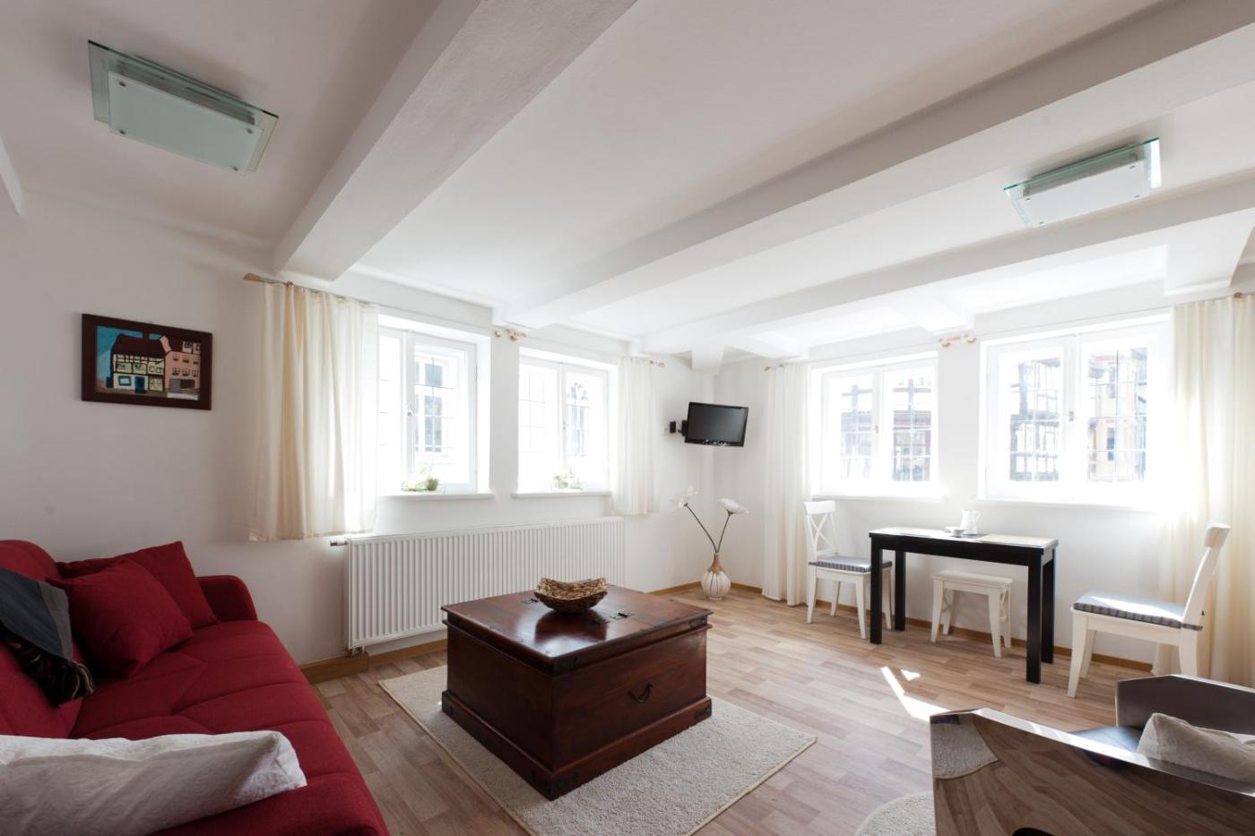 Die Schlaf-gut Appartments bieten Ihnen individuell gestaltete Unterkünfte in einem traditionellen Fachwerkhaus. Alle Apartments sind mit Holzmöbeln eingerichtet.