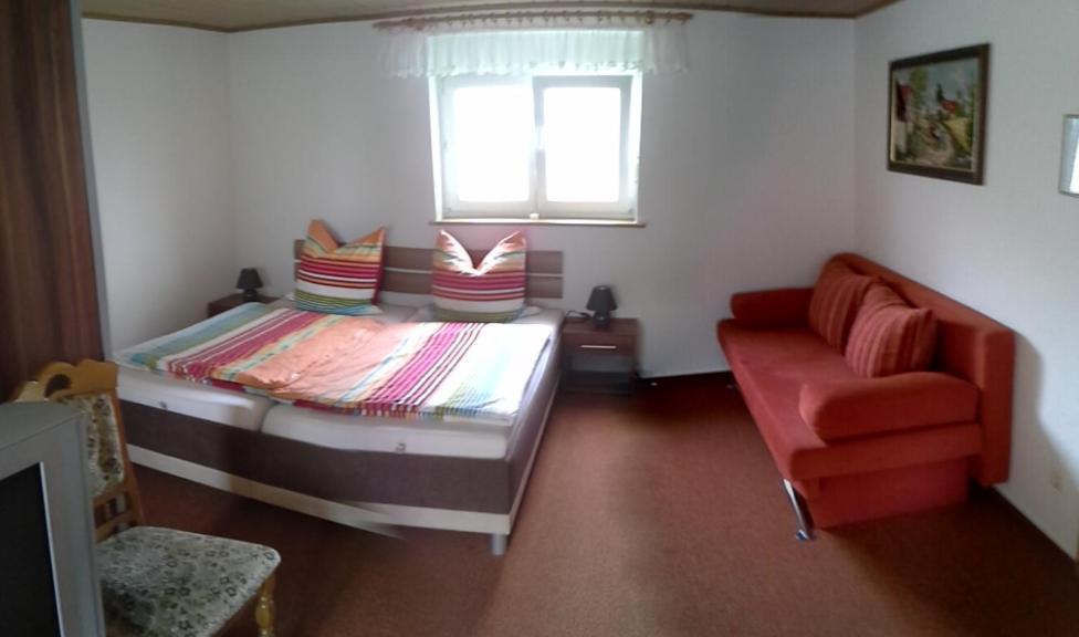 Die Unterkunft Familie Drescher bietet ihren Gästen eine Terrasse, Poolblick, einen Sitzbereich, einen Satelliten Flachbild-TV, eine voll ausgestattete Küche mit einem Kühlschrank und einer Mikrowelle sowie ein eigenes Badezimmer mit einer Dusche und einem Haartrockner. Es gibt eine Herdplatte und einen Toaster sowie eine Kaffeemaschine und einen Wasserkocher.