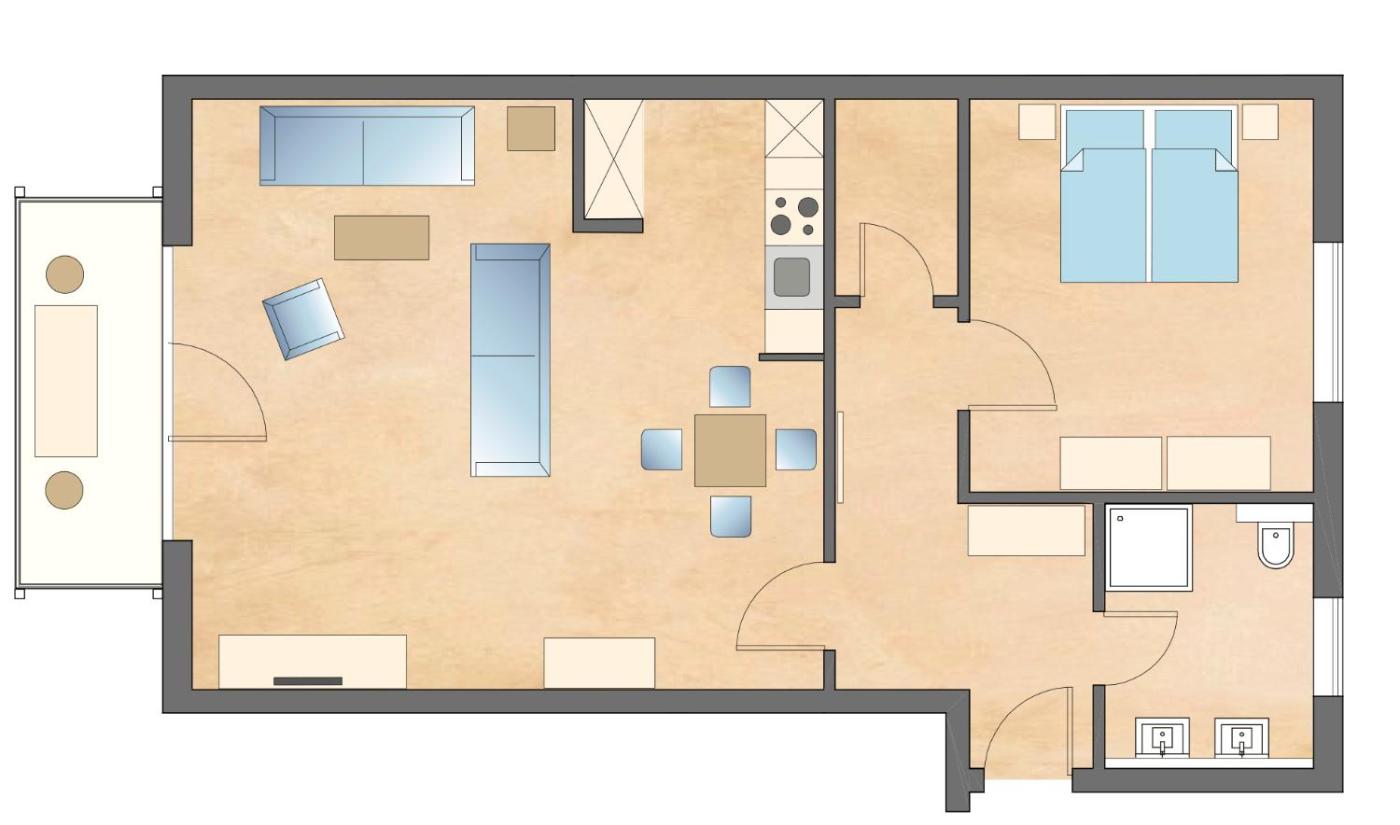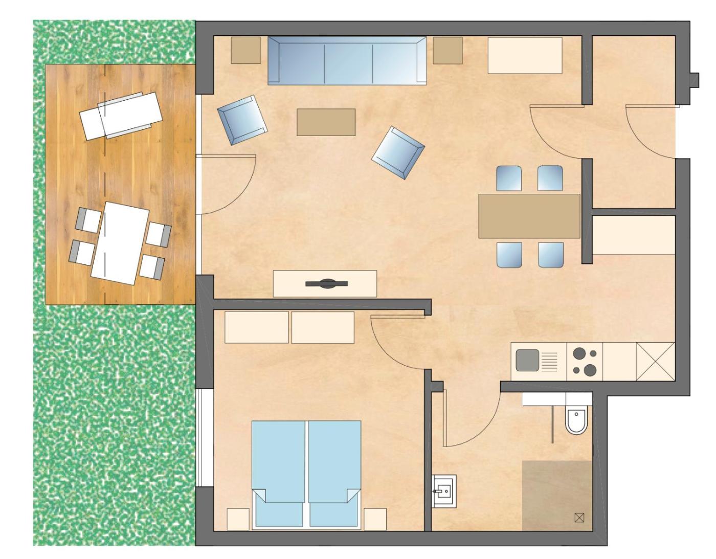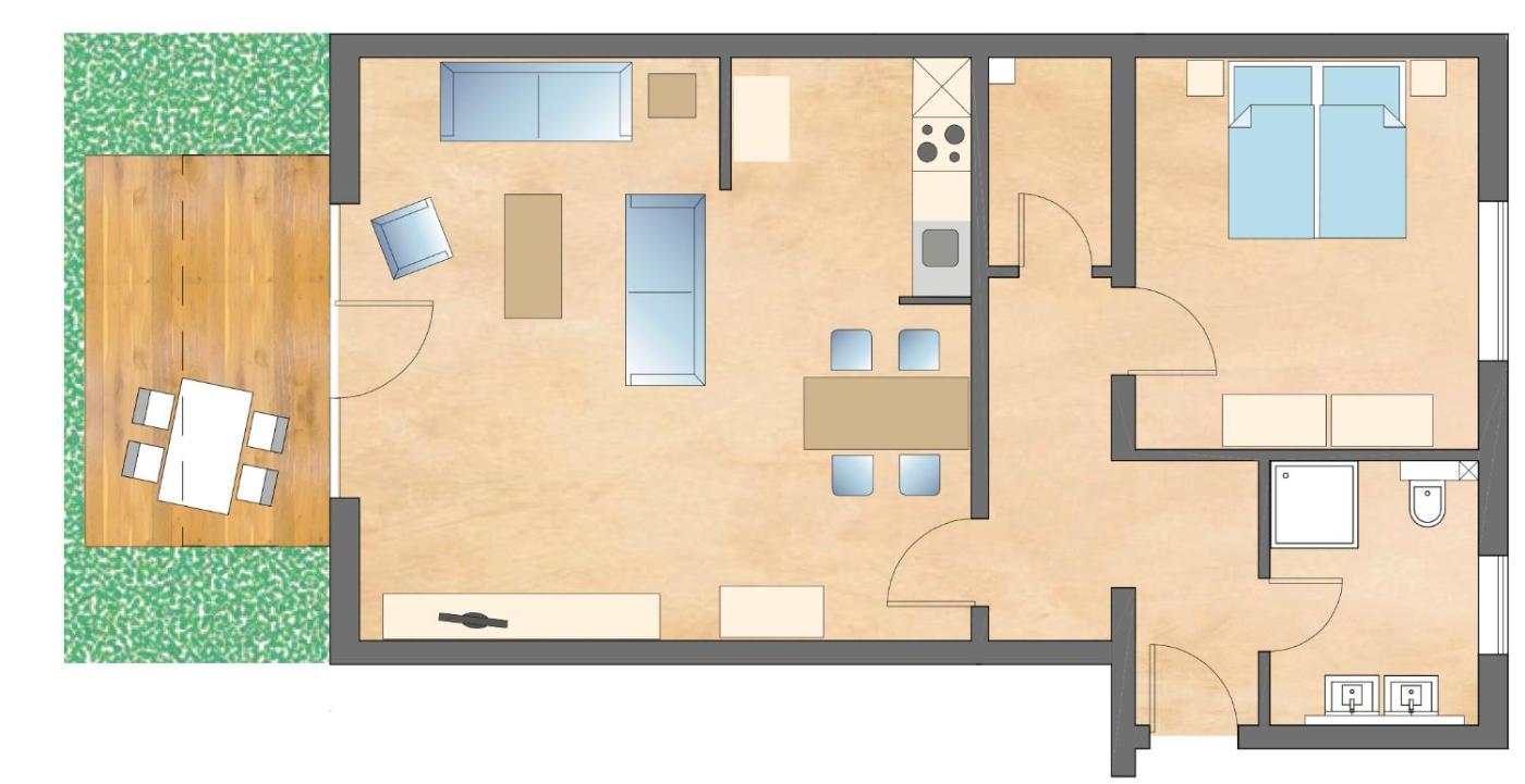 Apartment - Erdgeschoss. Featuring a private entrance, this spacious apartment also comprises 1 living room, 1 separate bedroom and 1 bathroom with a shower. Meals can be prepared in the well-fitted kitchen, which comes with a stovetop, a refrigerator, a dishwasher and kitchenware. Boasting a terrace with garden views, this apartment also provides a coffee machine and a flat-screen TV with satellite channels. The unit offers 2 beds. ;