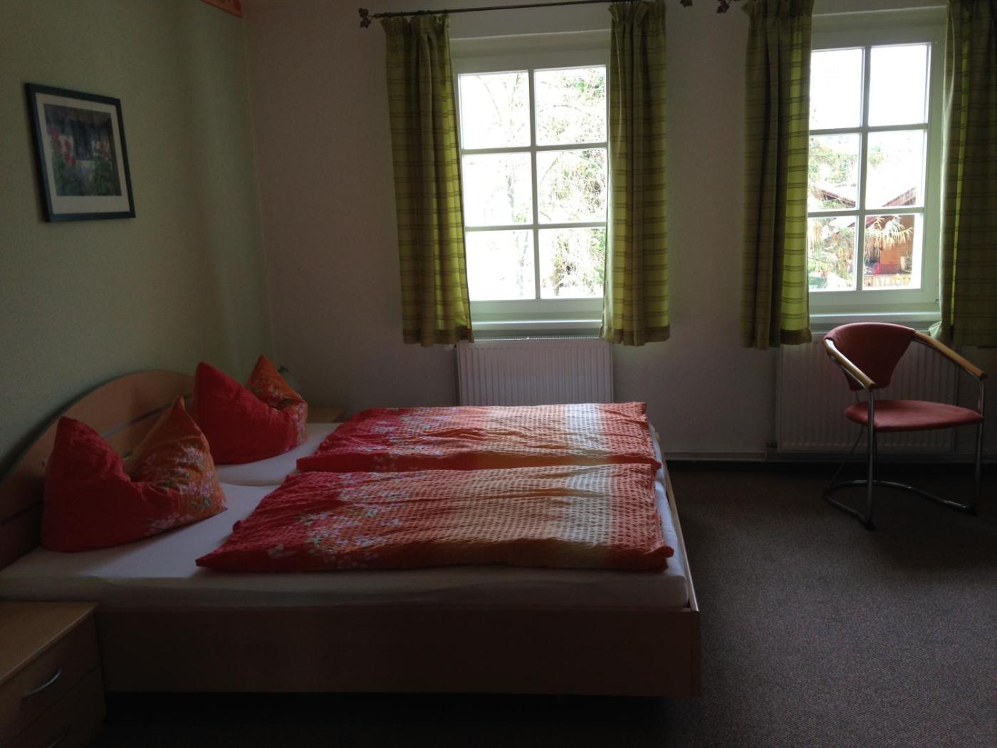 Doppelzimmer mit Gartenblick. The double room offers heating, as well as a private bathroom boasting a shower. The double room features a flat-screen TV with satellite channels, a seating area, a wardrobe, a carpeted floor as well as garden views. The unit has 1 bed. ;