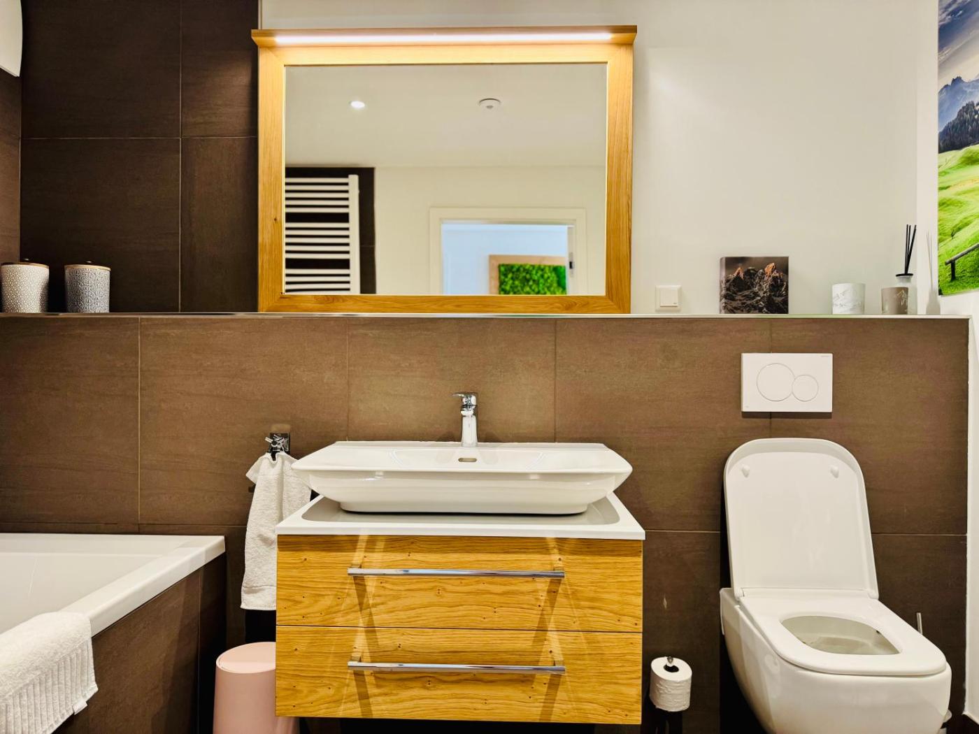 Diese Ferienwohnung verfügt über eine Terrasse sowie Bergblick, 2 Schlafzimmer, ein Wohnzimmer, einen Satelliten Flachbild-TV, eine gut ausgestattete Küche sowie 2 Badezimmer mit einer Dusche und einer Badewanne. In dieser Ferienwohnung werden Handtücher und Bettwäsche angeboten.