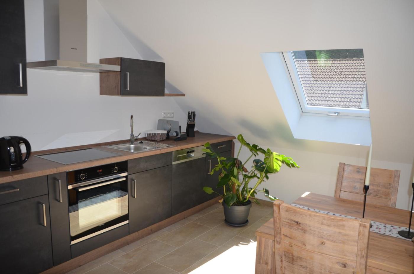 Die Unterkunft Ferienwohnungen am Schambacher Weg bietet ihren Gästen einen Balkon, einen Sitzbereich, einen Flachbild-TV, eine voll ausgestattete Küche mit einem Kühlschrank und einem Geschirrspüler sowie ein eigenes Badezimmer mit einer Dusche und einem Haartrockner. Es gibt einen Ofen, eine Herdplatte und einen Toaster sowie eine Kaffeemaschine und einen Wasserkocher.