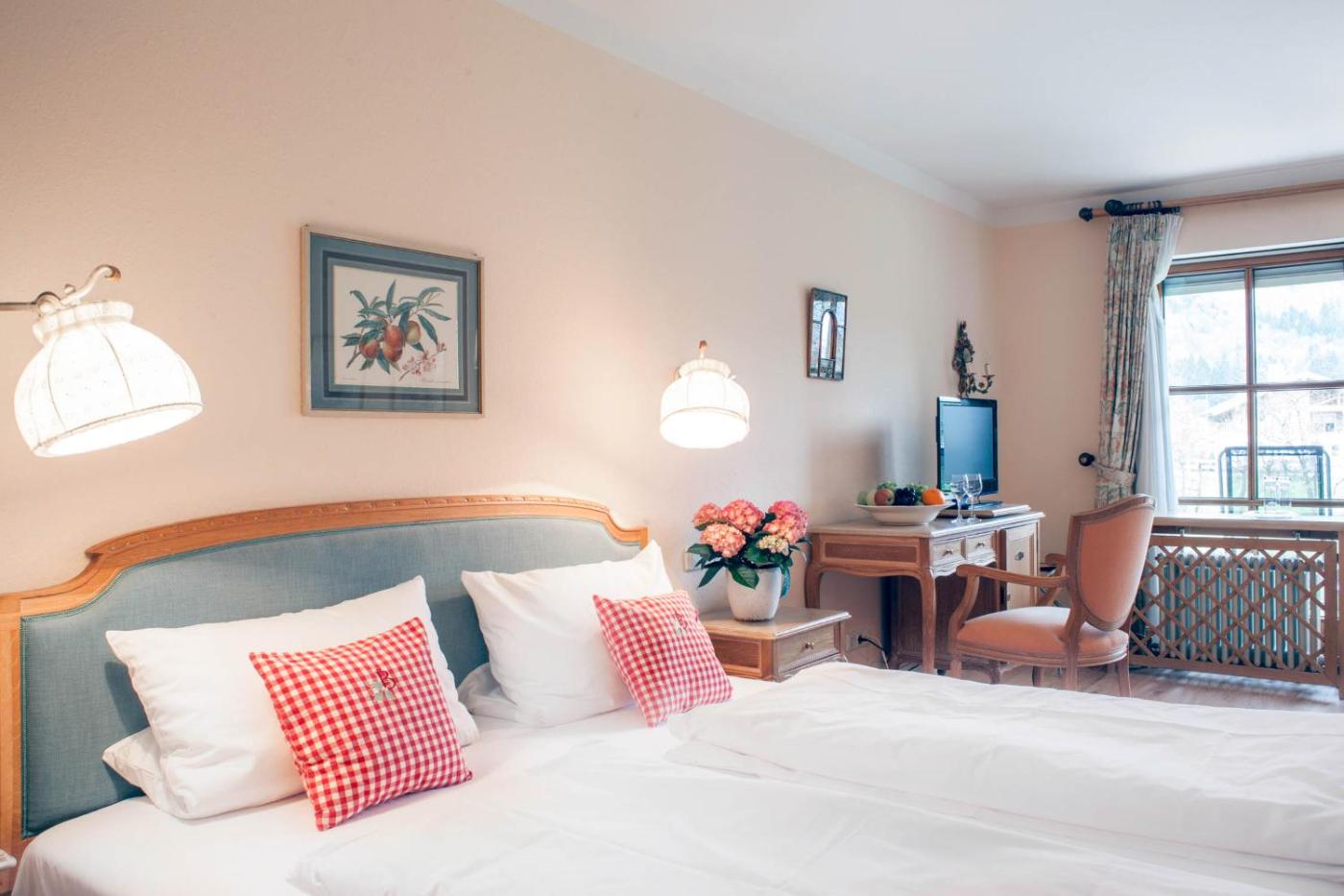 Das Hotel Bachmair Alpina in Rottach Egern bietet rustikale Zimmer mit Terrasse oder Balkon und Bergblick.