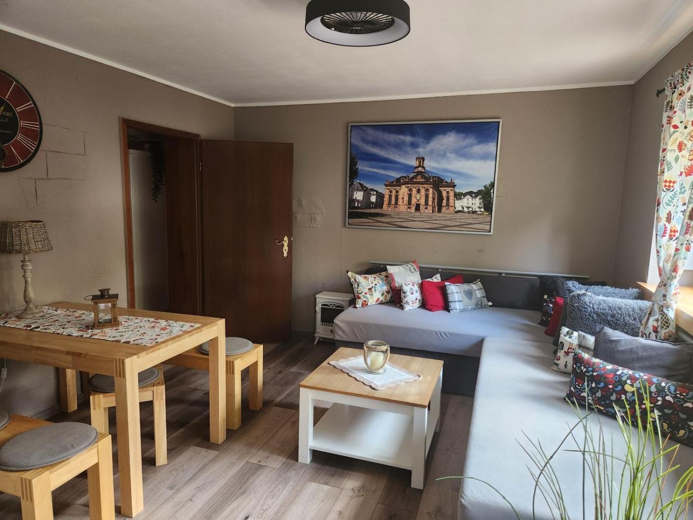 Gelegen in Saarbrücken, 7,4 km von Congresshalle Saarbrücken und 7,6 km von Hauptbahnhof Saarbrücken, bietet die Unterkunft Ferienwohnung Salut Übernachtungsmöglichkeiten mit Annehmlichkeiten wie kostenlosem WLAN und einem Flachbild-TV. Diese Ferienwohnung befindet sich in einem Gebäude aus dem Jahr 1895 und ist 7,8 km von Landtag des Saarlandes und 8 km von Saarländisches Staatstheater entfernt.