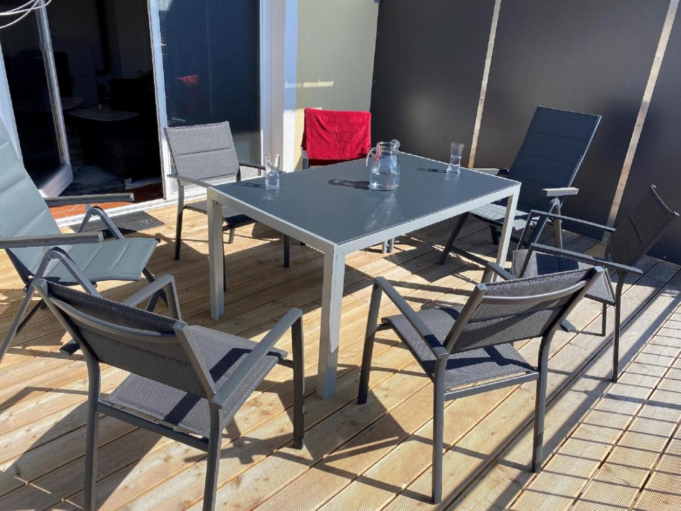 Apartment mit 1 Schlafzimmer. This apartment features 1 living room, 1 separate bedroom and 1 bathroom with a bath and a shower. Guests can make meals in the kitchen that has a stovetop, a refrigerator, a dishwasher and kitchenware. This apartment has a coffee machine, a seating area, a flat-screen TV with satellite channels and a terrace. The unit has 2 beds.