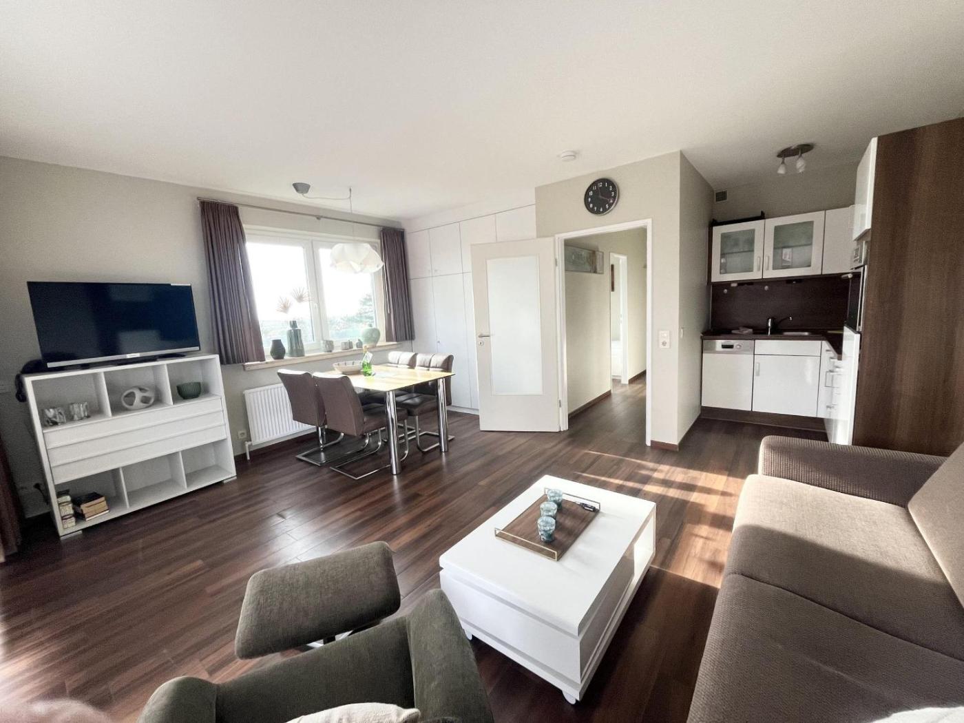 Apartment. Guests will have a special experience as the apartment offers a sauna. This apartment consists of 1 living room, 1 separate bedroom and 1 bathroom with a shower and a hairdryer. In the fully equipped kitchen, guests will find a stovetop, a refrigerator, a dishwasher and an oven. Featuring a balcony, this apartment also provides a tea and coffee maker, a high chair for children and a TV. The unit offers 3 beds.