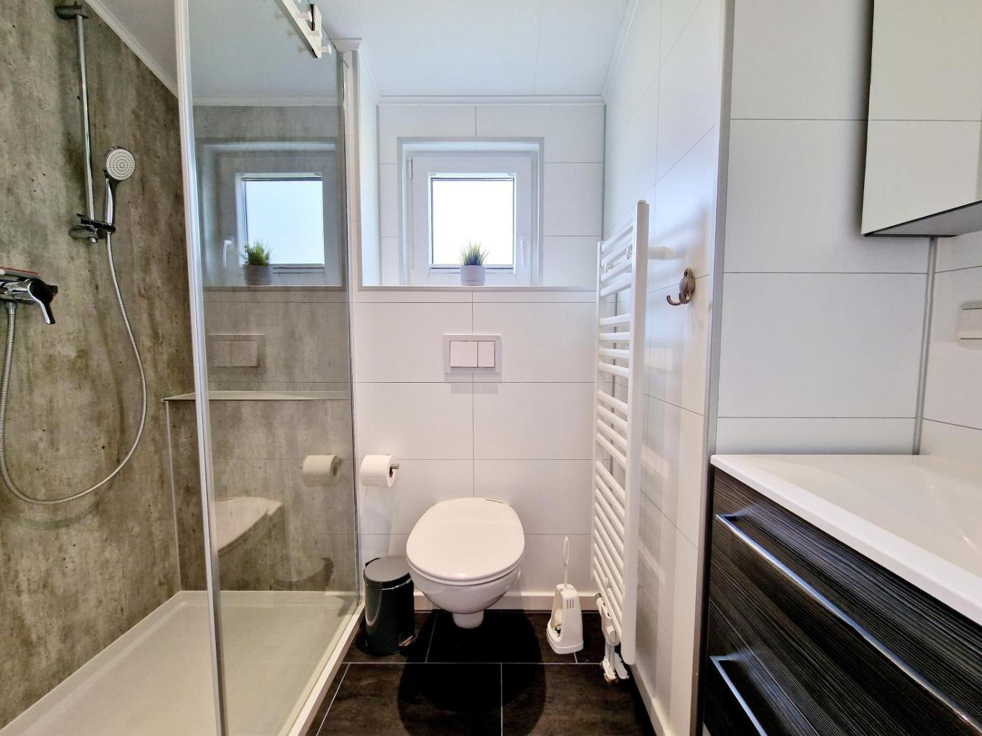 Mobilheim. Guests will have a special experience as this mobile home features a hot tub, a sauna and a fireplace. This mobile home comprises 2 bedrooms, kitchenette, a terrace and 1 bathroom with a shower. The well-fitted kitchenette features a stovetop, a refrigerator, a dishwasher and an oven. The mobile home provides a washing machine, a coffee machine, tumble dryer, a flat-screen TV, as well as sea views. The unit offers 2 beds.