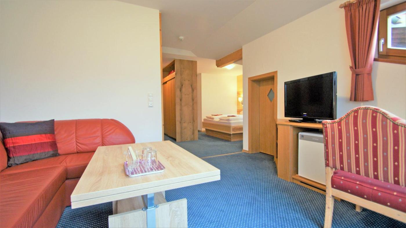 Familienzimmer. Dieses geräumige Familienzimmer verfügt über einen Sitzbereich, einen Essbereich, einen Balkon mit Bergblick sowie ein eigenes Bad mit einer ebenerdigen Dusche. Die Wohneinheit ist mit 2 Betten ausgestattet. ;