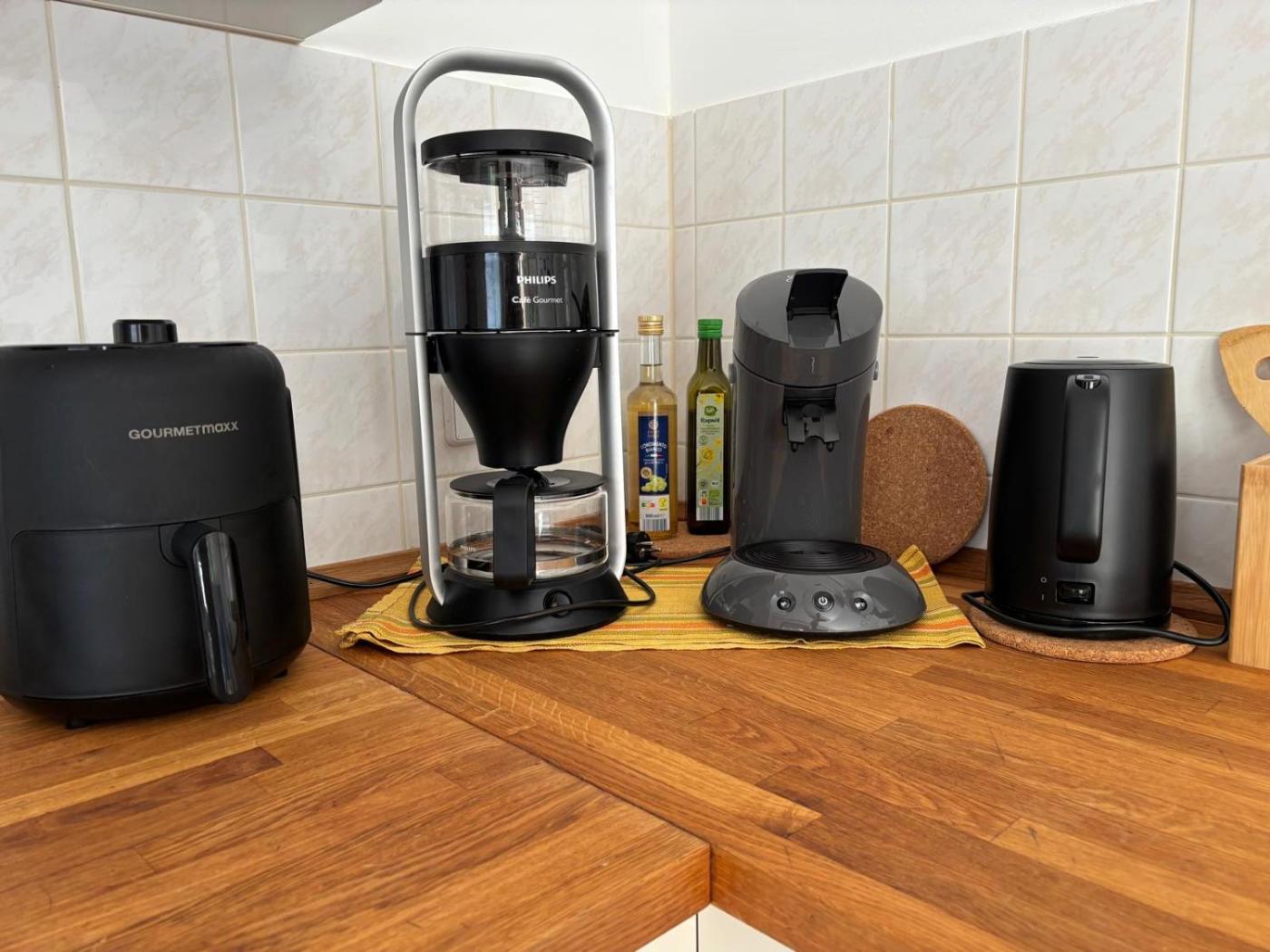 Apartment mit 1 Schlafzimmer und Terrasse. This holiday home has a toaster, stovetop and kitchen. There is also a bathroom with a level-access shower.