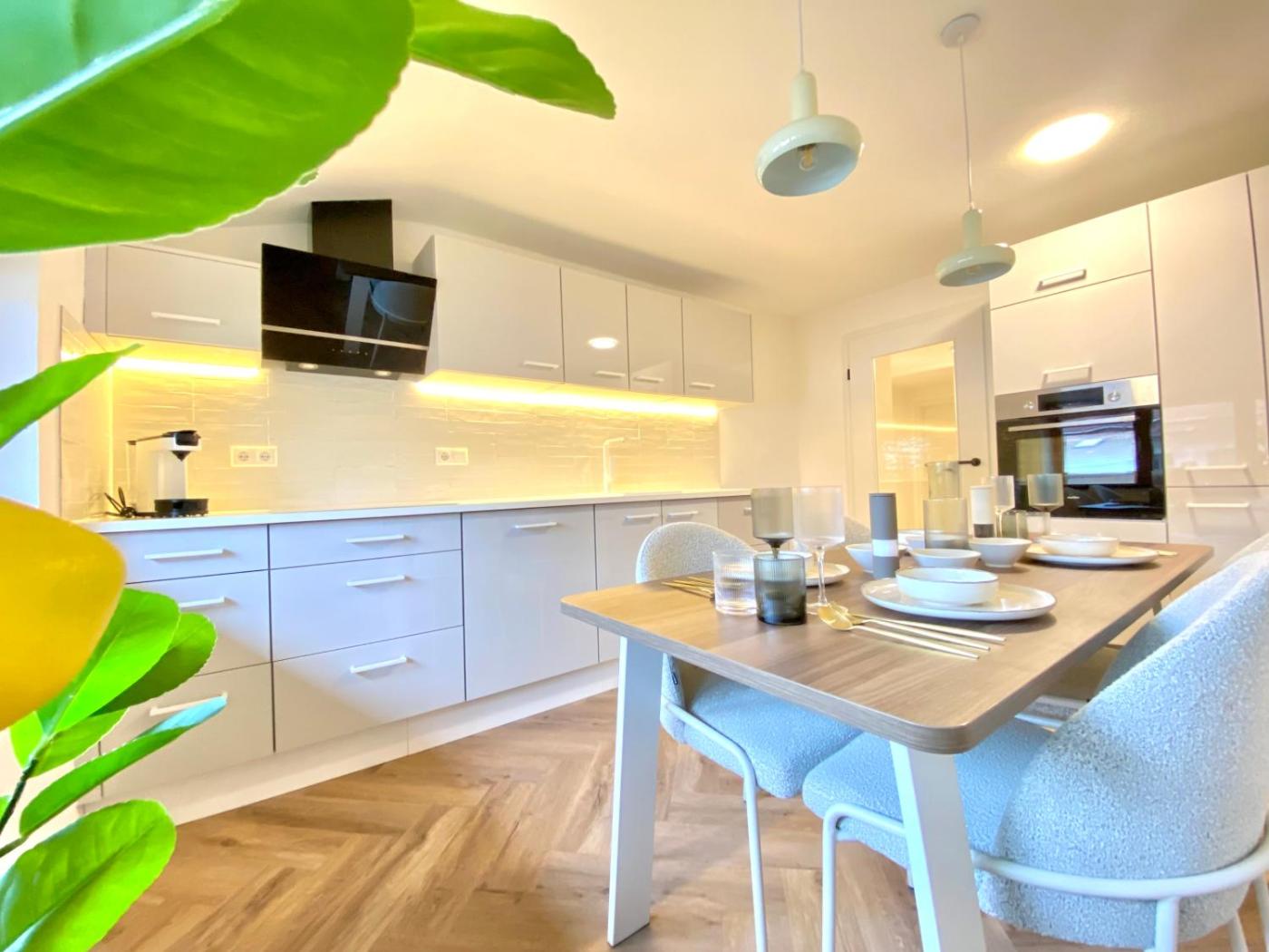 Diese Ferienwohnung mit einem Balkon und Bergblick bietet 2 Schlafzimmer, ein Wohnzimmer, einen Flachbild-TV, eine gut ausgestattete Küche mit einem Kühlschrank und einem Geschirrspüler sowie 1 Badezimmer mit einer Dusche. In dieser Ferienwohnung werden Handtücher und Bettwäsche angeboten.