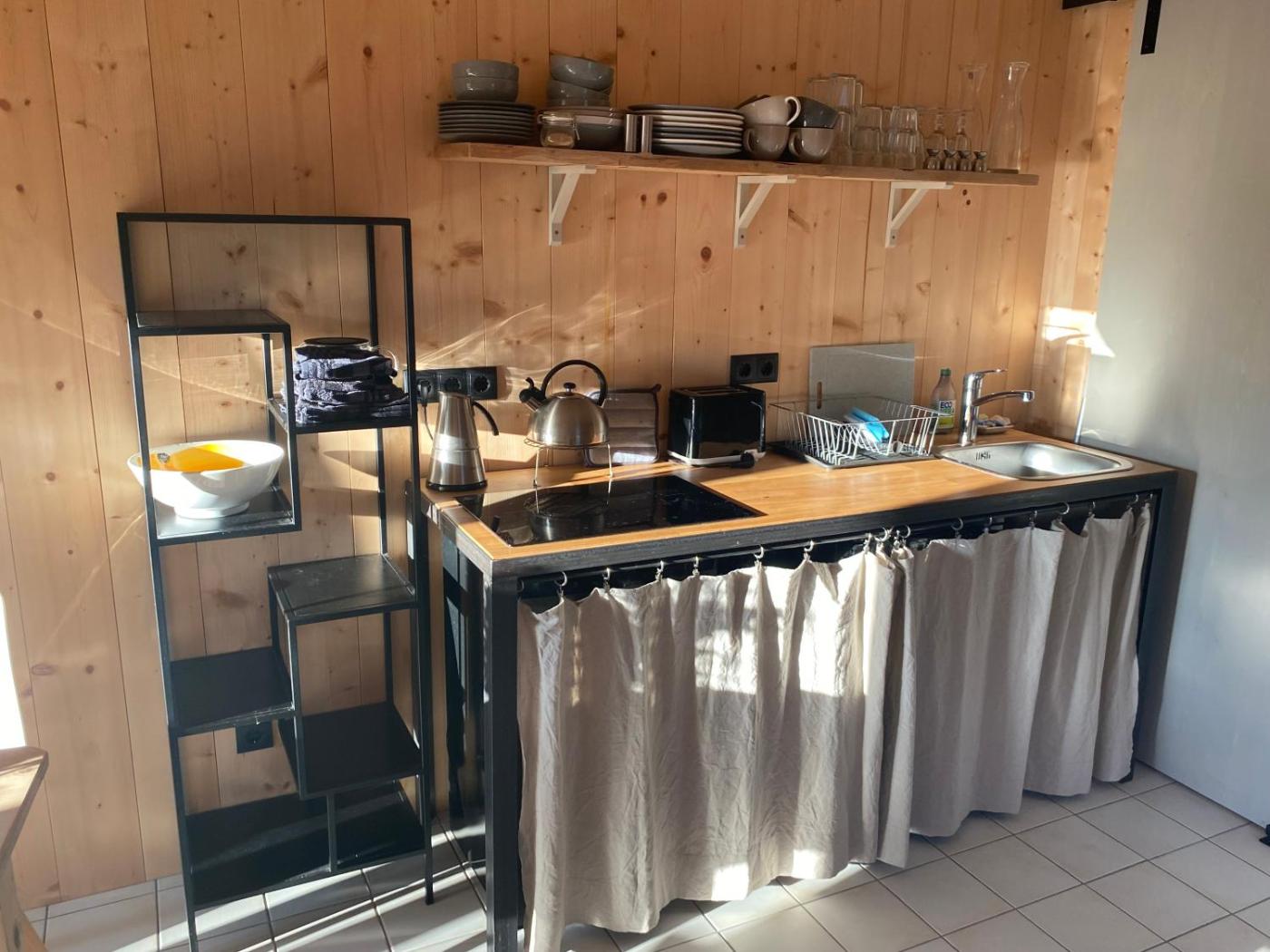 Dieses Ferienhaus hat eine Terrasse, 2 Schlafzimmer, ein Wohnzimmer und eine gut ausgestattete Küchenzeile. Es gibt einen Flachbild-TV.