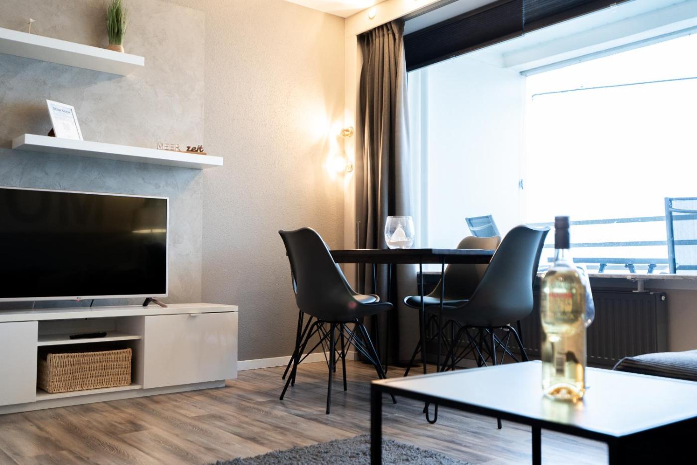 Apartment mit Meerblick. This apartment comes with 1 living room, 1 separate bedroom and 1 bathroom with a shower and a hairdryer. Guests can make meals in the kitchen that features a stovetop, a refrigerator, a dishwasher and kitchenware. Boasting a balcony with sea views, this apartment also features a washing machine and a TV. The unit has 2 beds.