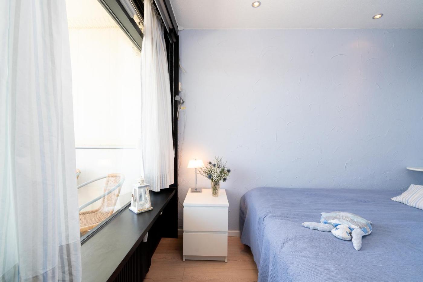 Diese Ferienwohnung mit einem Balkon und Meerblick bietet 2 Schlafzimmer, ein Wohnzimmer, einen TV, eine gut ausgestattete Küche mit einem Kühlschrank und einem Geschirrspüler sowie 1 Badezimmer mit einer Dusche.