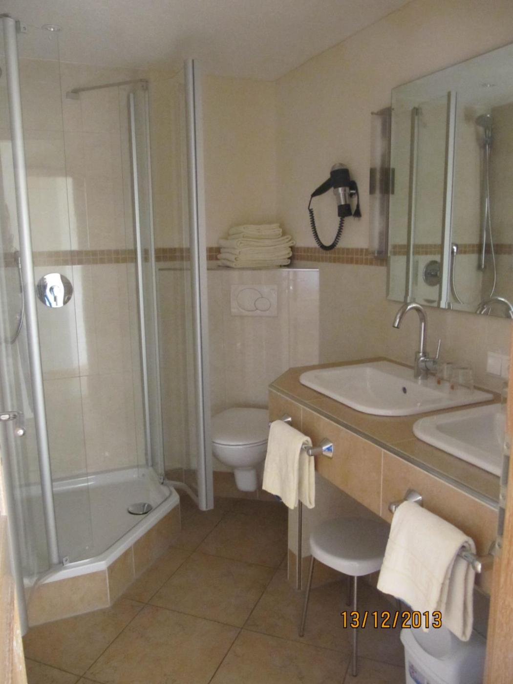 Doppelzimmer. Dieses Zimmer verfügt über einen TV und ein eigenes Bad mit kostenfreien Pflegeprodukten und einem Haartrockner. Bitte beachten Sie, dass sich einige Zimmer in einem separaten Gebäude namens Sonnenhof befinden. Dieses liegt 400 m entfernt in einer ruhigen Seitenstraße. Das Frühstück wird im Hauptgebäude des Gasthaus-Krone-Post serviert. ;