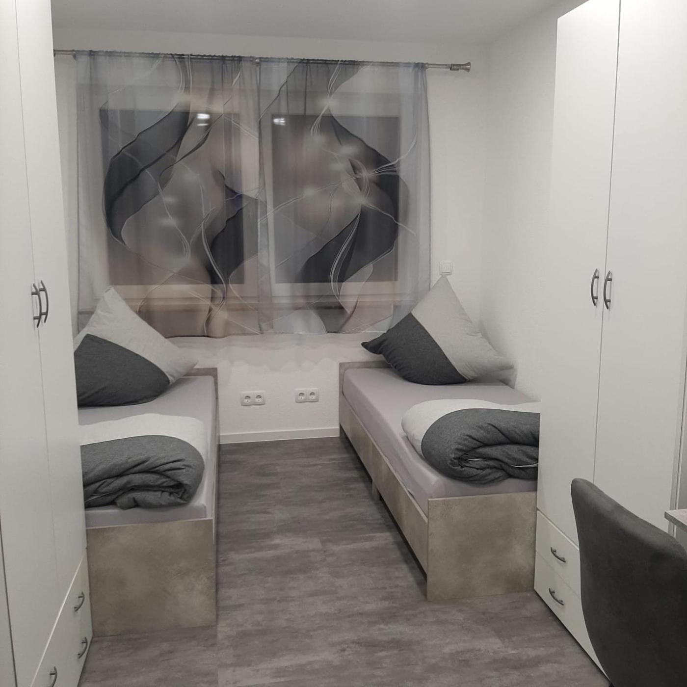 Zweibettzimmer. The twin room offers a wardrobe, an electric kettle, heating and a flat-screen TV. The unit offers 2 beds. ;