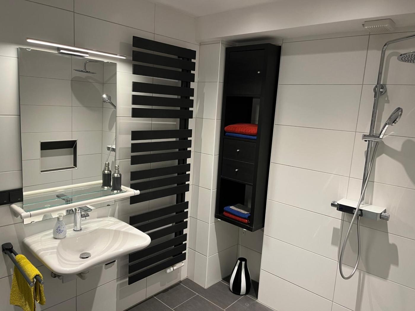 Apartment mit 2 Schlafzimmern. Featuring a private entrance, this spacious apartment also comprises 2 bedrooms, a seating area and 1 bathroom with a walk-in shower and a hairdryer. Meals can be prepared in the well-fitted kitchen, which comes with a stovetop, a refrigerator, a dishwasher and kitchenware. Boasting a terrace with garden views, this apartment also provides a coffee machine and a flat-screen TV with satellite channels. The unit offers 3 beds.