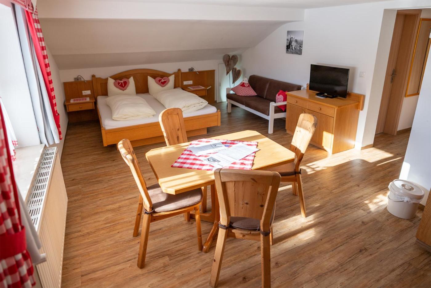 Familienzimmer mit Bad. The family room provides a sofa, a high chair for children, as well as a private bathroom featuring a walk-in shower and a hairdryer. The fully equipped kitchenette features a stovetop, a refrigerator and kitchenware. The family room offers a flat-screen TV with satellite channels, a coffee machine, a seating area, a wardrobe as well as garden views. ;