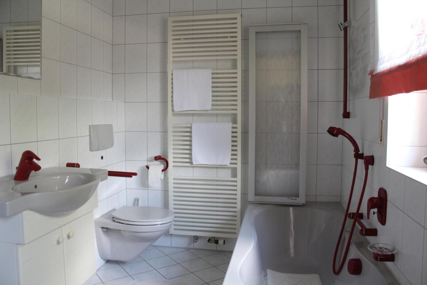 Apartment - Erdgeschoss. This apartment comes with 1 living room, 1 separate bedroom and 1 bathroom with a bath. The kitchenette features a refrigerator, a toaster and an electric kettle. The apartment features a seating area, a sofa and heating. The unit has 1 bed.