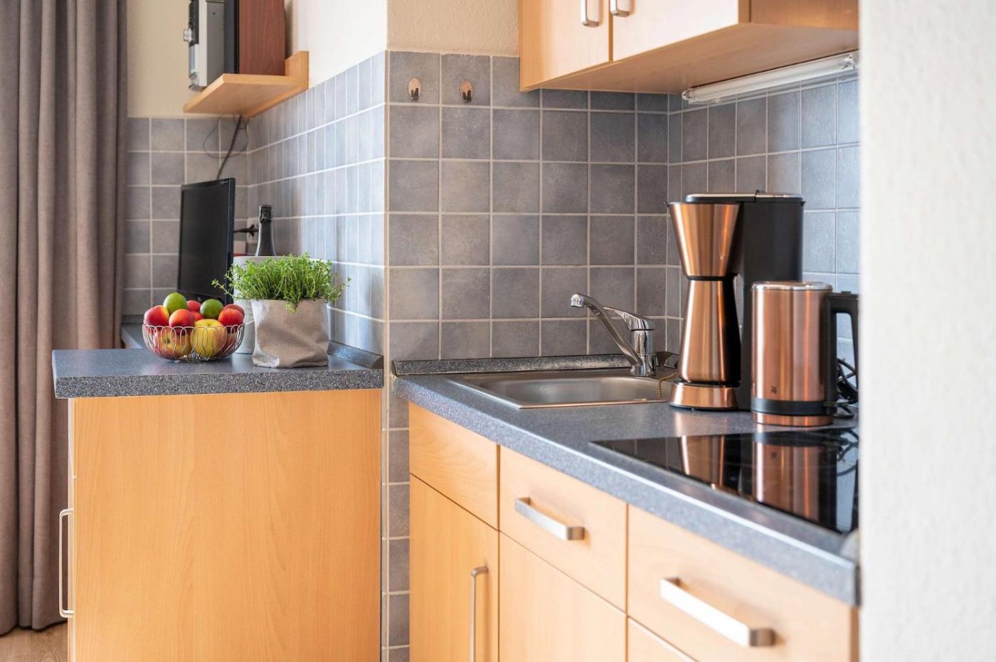 Apartment mit Terrasse. Boasting 1 bedroom, this apartment has 1 bathroom with a shower, a seating area and terraceyou can relax. Meals can be prepared in the kitchen, which has a stovetop, a refrigerator, a dishwasher and kitchenware. This apartment has a coffee machine, a wardrobe, a flat-screen TV with cable channels and an outdoor dining area. The unit offers 1 bed.