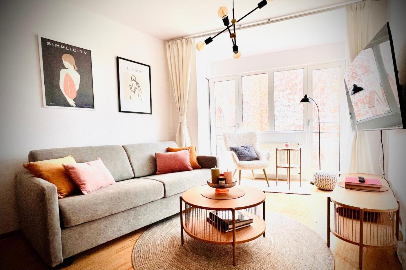 Apartment mit 1 Schlafzimmer. The fully equipped kitchen has a stovetop, a refrigerator, a dishwasher and kitchenware. The apartment features a flat-screen TV with satellite channels, a washing machine, a private entrance, a tea and coffee maker as well as city views. The unit has 2 beds.