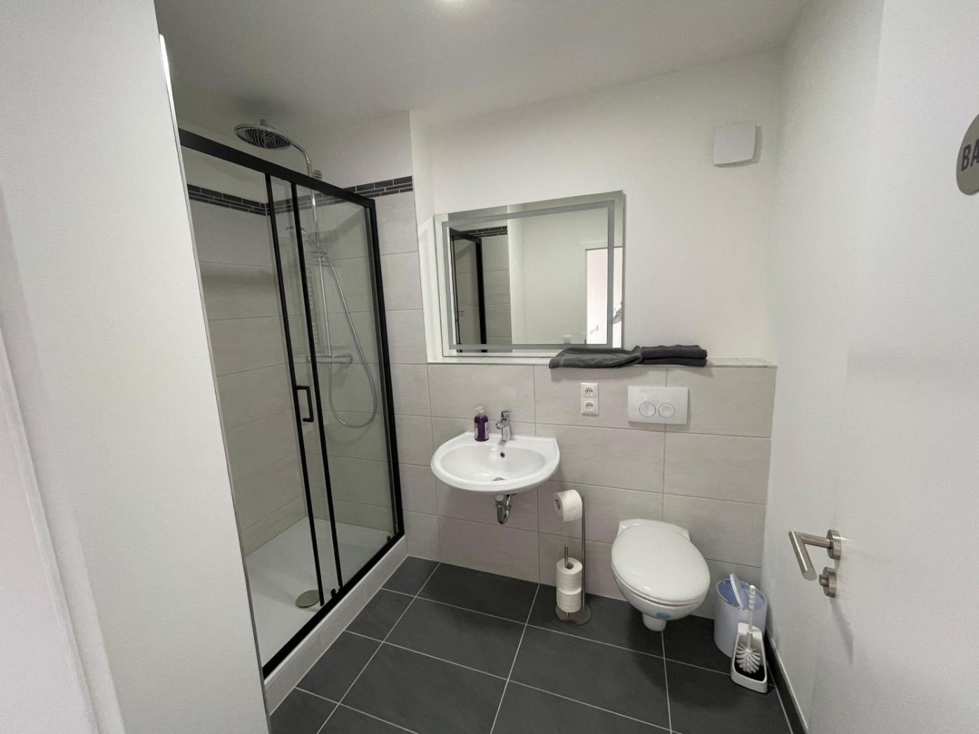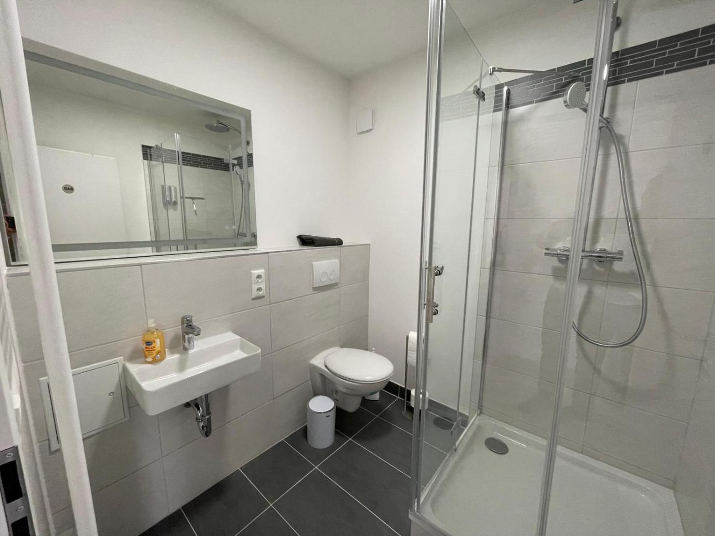 Doppelzimmer. The double room features an electric kettle and heating, as well as a private bathroom featuring a shower. The well-equipped kitchen features a stovetop, a refrigerator, kitchenware and a microwave. The double room provides a washing machine, a dining area, a wardrobe, a flat-screen TV, as well as city views. The unit offers 2 beds. ;