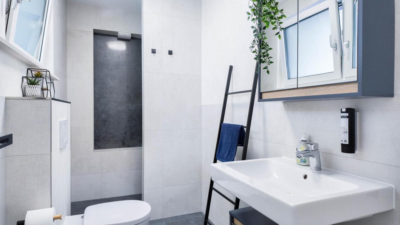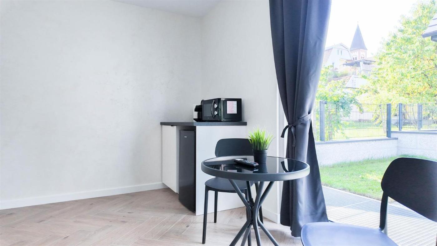 ALFA Stuttgart Doppelzimmer Teeküche Porsche Bosch l Gemeinschaftsbad WIFI SmartTV l Terrasse l Double room with kitchenette and shared bathroom l Terrace BS21A4