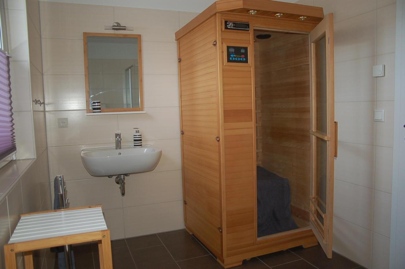 Die Unterkunft Behagliches Ferienhaus Zaunkönig -mit Kamin und Sauna- Blick über das romantische Bodetal bietet eine Sauna.