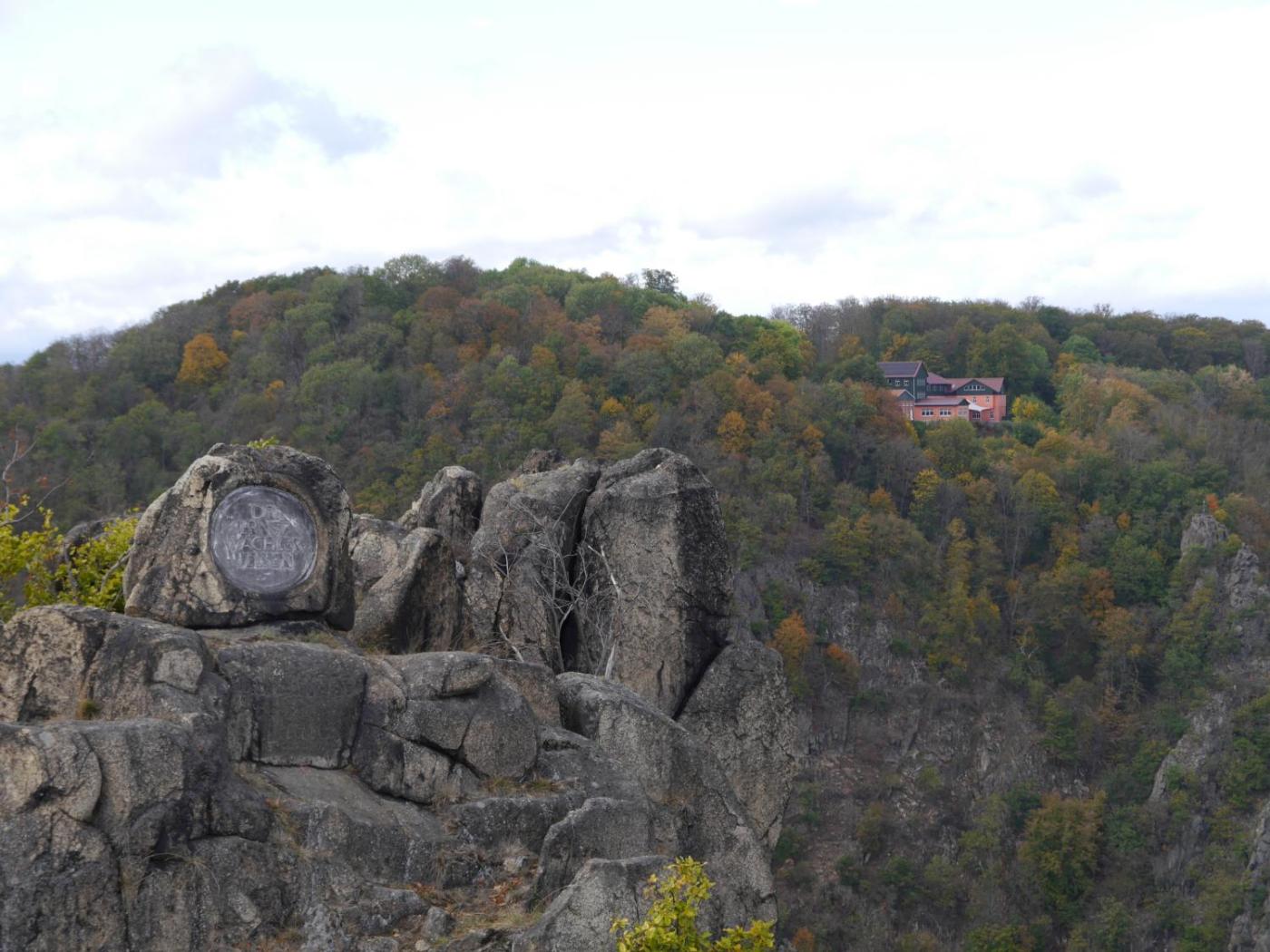 In der Nähe der Rosstrappen-Klippe bei Thale liegt das Berghotel Rosstrappe. Freuen Sie sich auf ruhige Zimmer, einen Biergarten und die Panoramaaussicht auf die Berge im Harz.