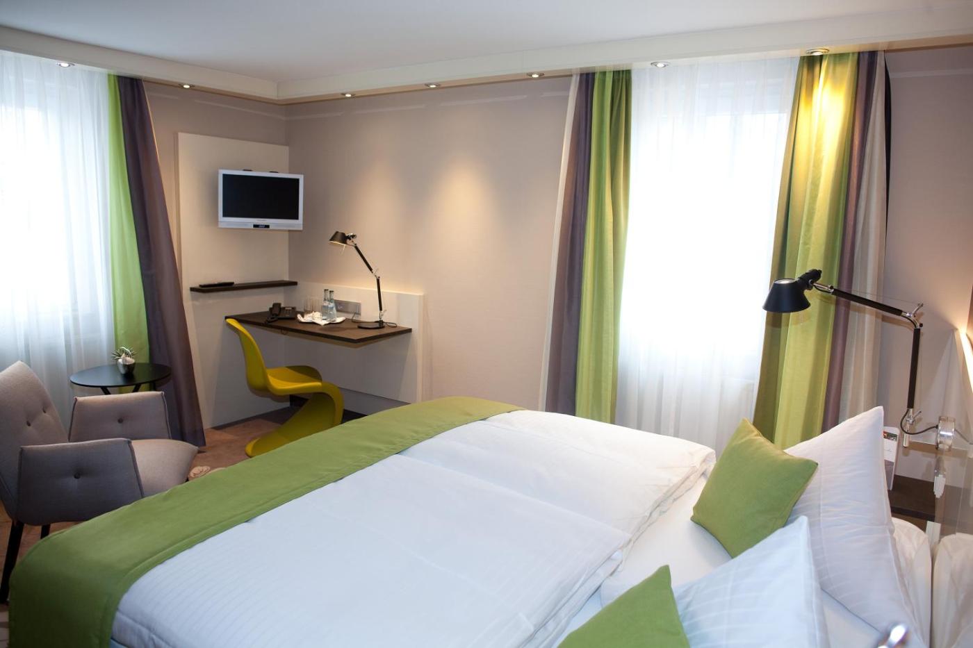 Junior Suite. Die helle Junior Suite verfügt über einen TV, ein Telefon und einen Schreibtisch. Sie bietet Blick auf Mühlhausen und die umliegenden Felder und Wälder.