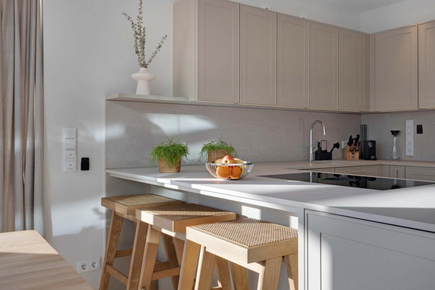 Die Unterkunft Modernes Ostsee Luxus-Penthouse Meerblick ist ausgestattet mit 2 Schlafzimmern, einer Küche mit einem Kühlschrank und einem Geschirrspüler, einer Waschmaschine und 2 Badezimmern mit einem Haartrockner. Es gibt einen TV.