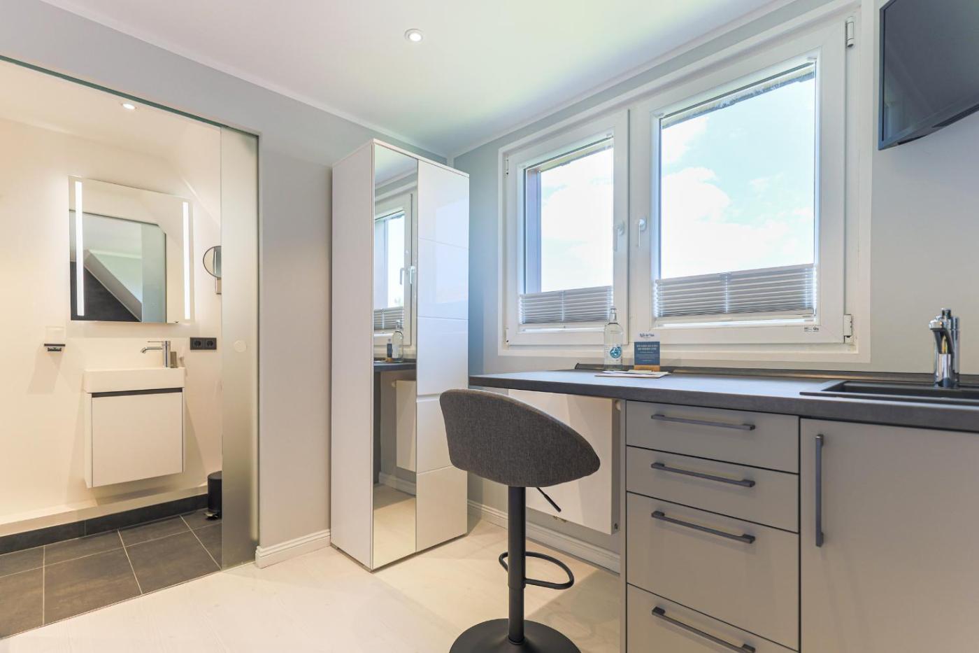 Apartment mit 1 Schlafzimmer. Meals can be prepared in the kitchen, which is equipped with a stovetop, a refrigerator, kitchenware and a microwave. The apartment provides a seating area, a wardrobe, as well as a private bathroom featuring a shower and a hairdryer. The unit offers 1 bed.