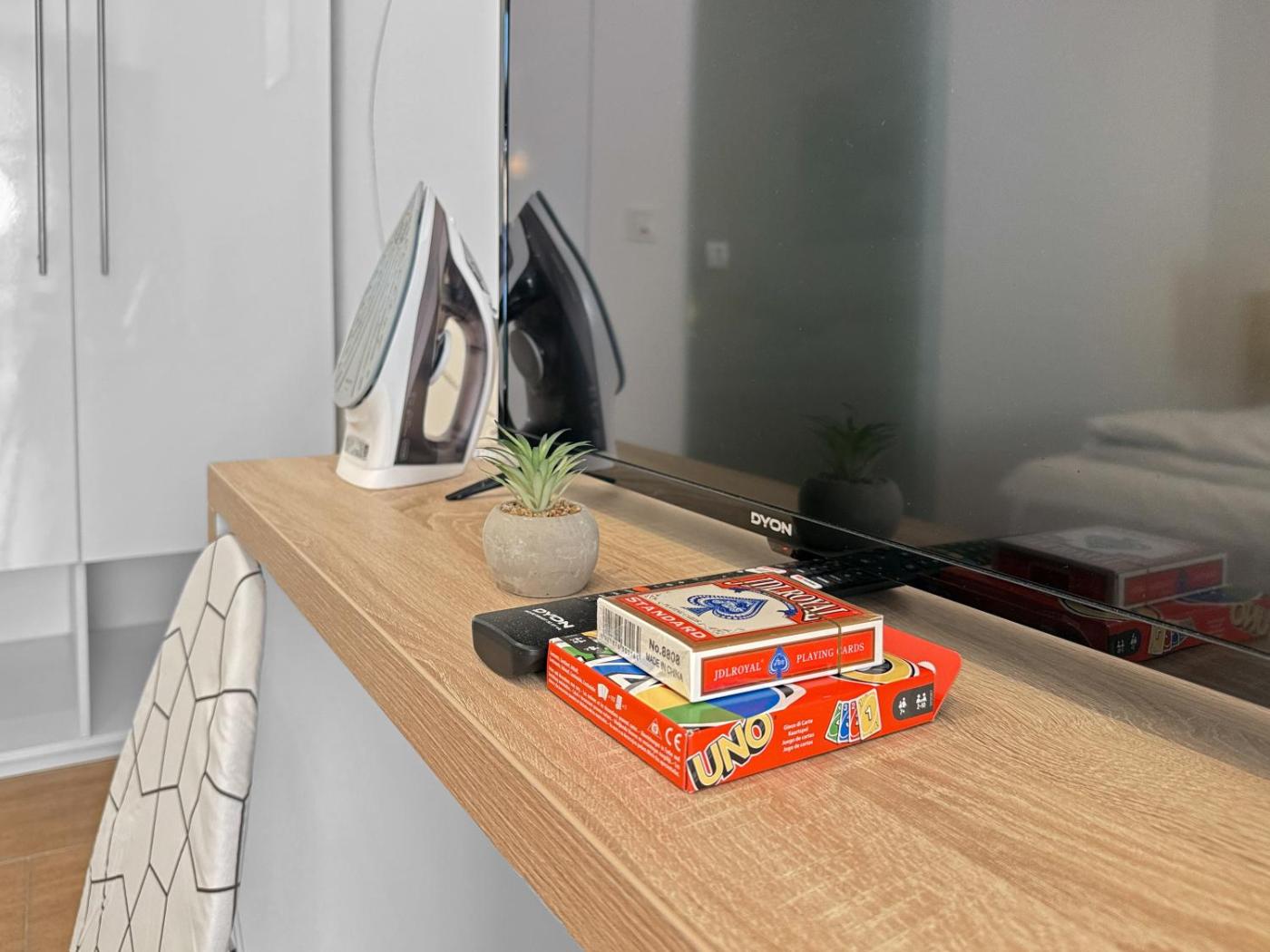 Diese Ferienwohnung hat eine Terrasse, 1 Schlafzimmer, ein Wohnzimmer und eine gut ausgestattete Küche. Es gibt einen Flachbild-TV.