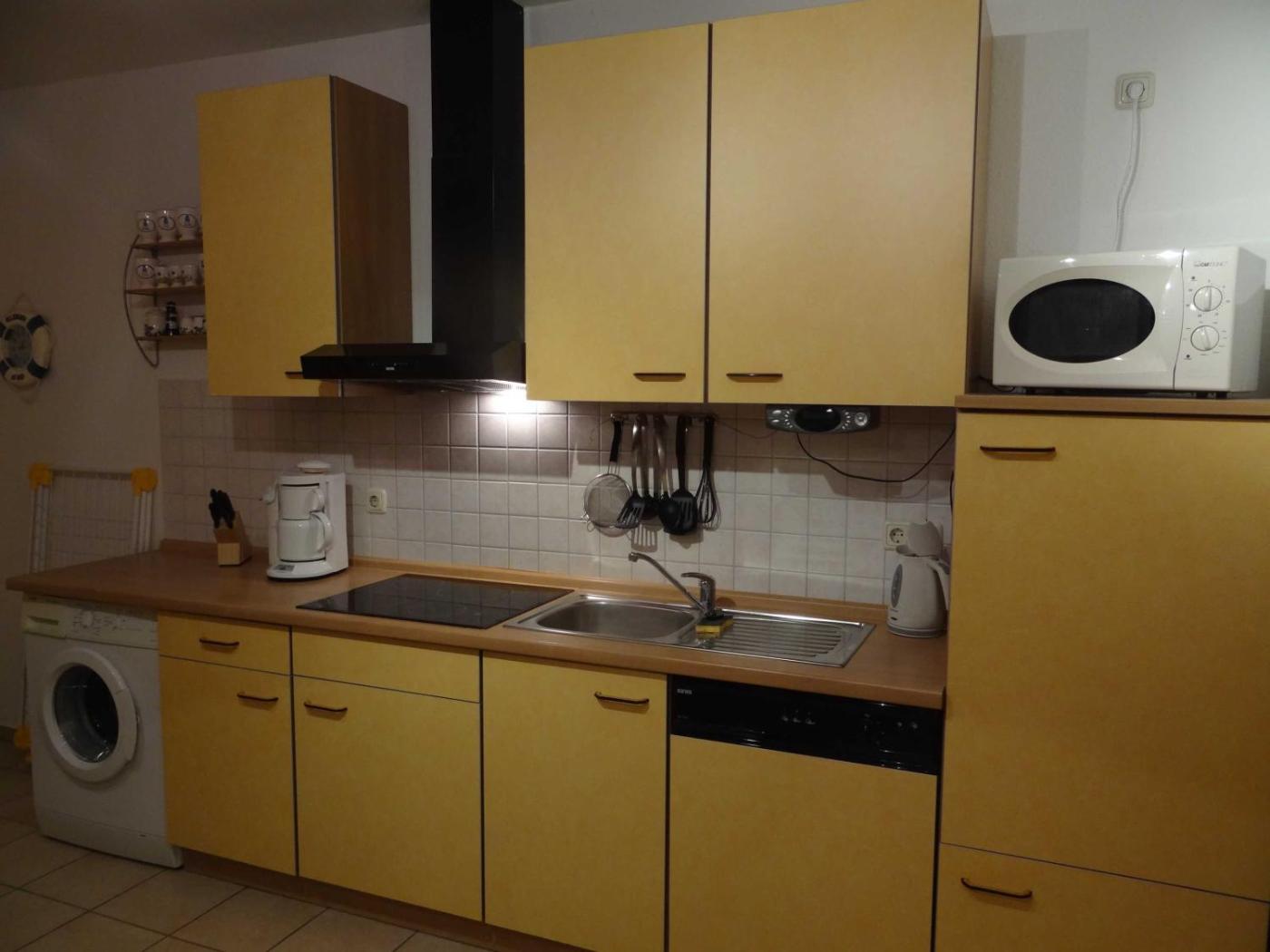 Apartment mit 2 Schlafzimmern und Balkon. This apartment includes 1 living room, 2 separate bedrooms and 1 bathroom with a shower. The well-equipped kitchenette has a refrigerator, a dishwasher, kitchenware and a microwave. A sofa, a TV, a washing machine and a balcony are offered in this apartment. The unit has 3 beds.