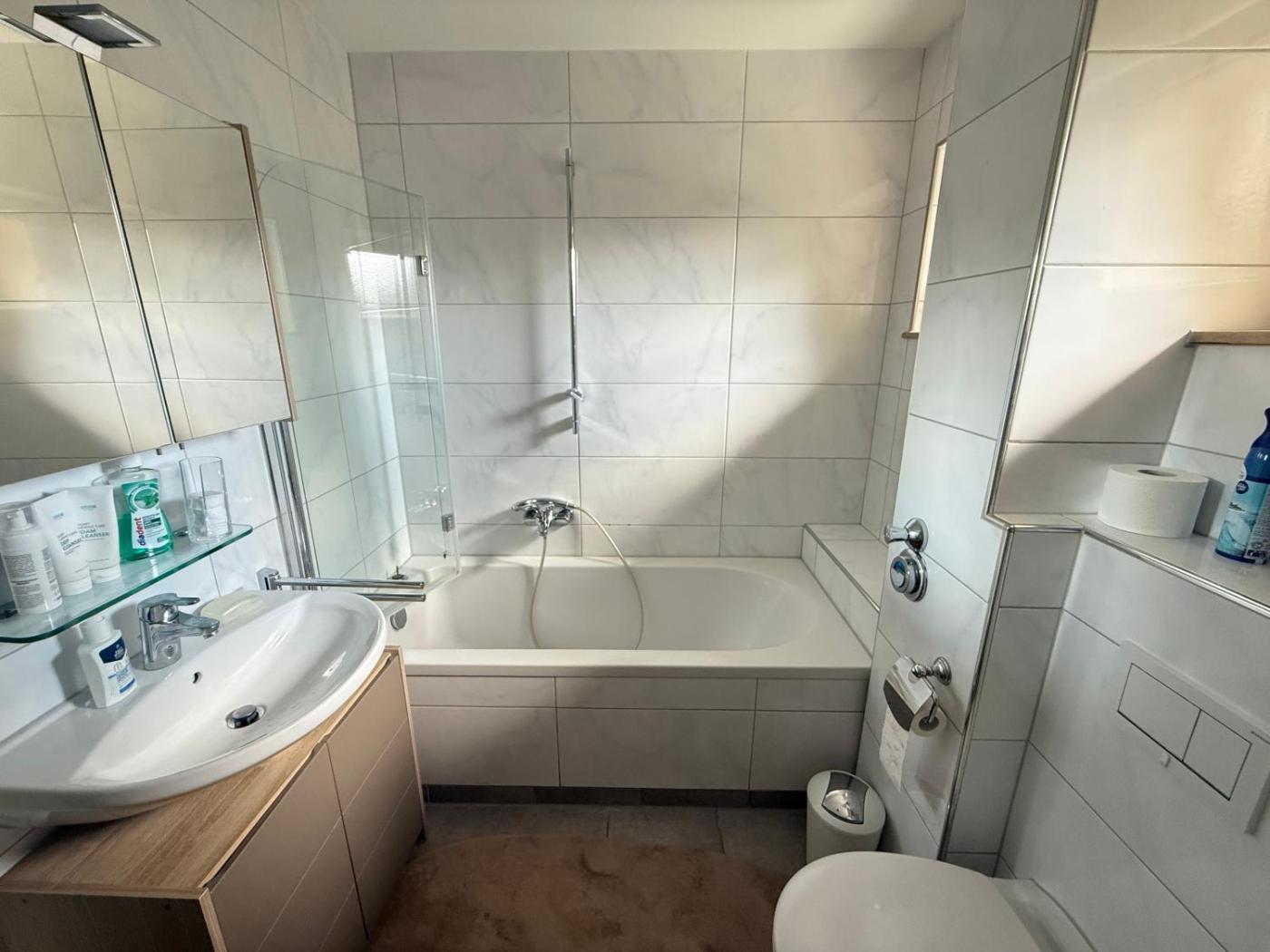 Apartment mit 1 Schlafzimmer. The apartments kitchen, which has a refrigerator, is available for cooking and storing food. The spacious apartment offers a washing machine, a coffee machine, a dining area, a wardrobe and a TV. The unit has 2 beds.