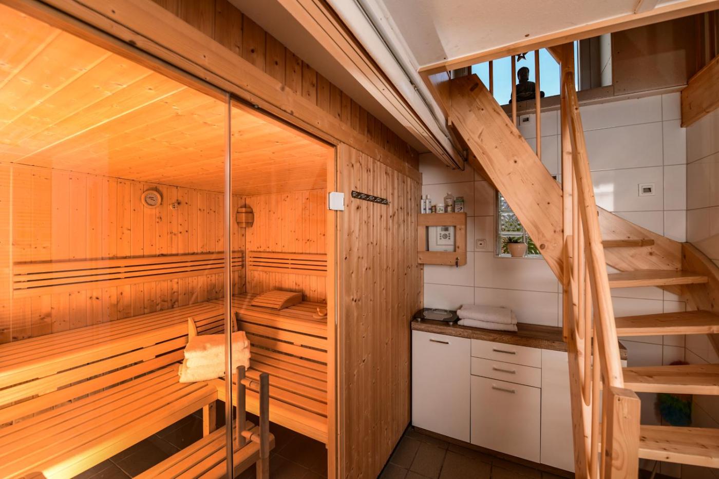 Apartment mit 2 Schlafzimmern. This apartment features a sauna. This spacious apartment features 1 living room, 2 separate bedrooms and 1 bathroom with a shower and bathrobes. Guests will find a stovetop, a refrigerator, a dishwasher and kitchenware in the kitchen. The apartment also comes with a barbecue. Boasting a terrace with garden views, this apartment also features a washing machine and a flat-screen TV with streaming services. The unit has 2 beds.