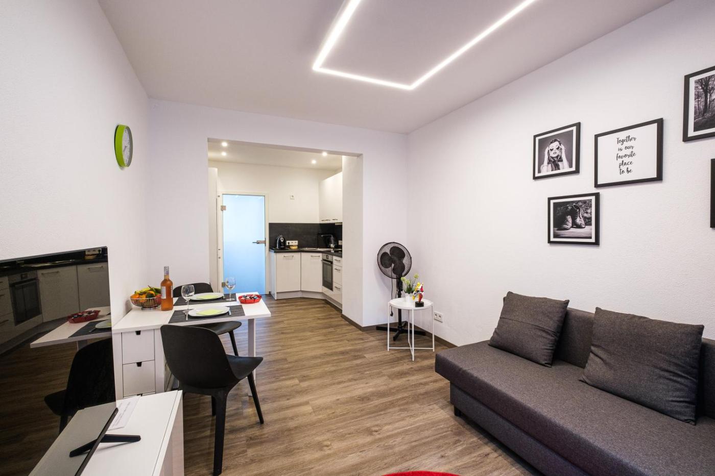 Superior Apartment mit 1 Schlafzimmer. This apartment comprises 1 living room, 1 separate bedroom and 1 bathroom with a hairdryer and free toiletries. Guests can make meals in the fully equipped kitchen that has a dishwasher, kitchenware and an oven. This apartment features a private entrance, a coffee machine and a TV with satellite channels. The unit offers 2 beds.