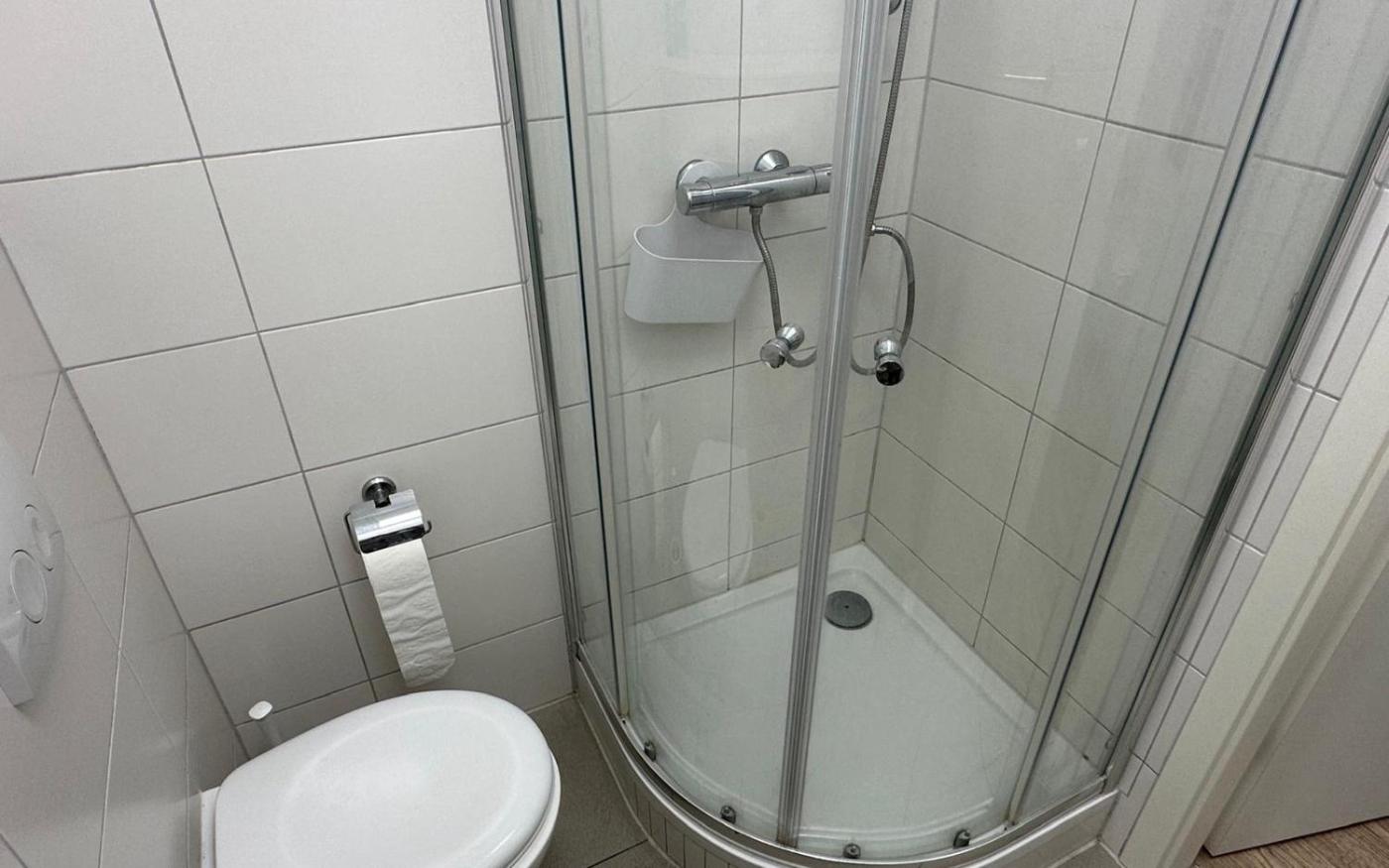 Zweibettzimmer mit eigenem Bad. The twin room offers a wardrobe and heating, as well as a private bathroom boasting a shower. The unit has 2 beds.
