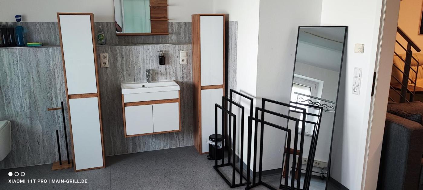 Monteur-Ferienwohnung - Loft - mit 123qm bei Würzburg mit Parkplatz Terasse Grill WLAN - nur Einzelbetten