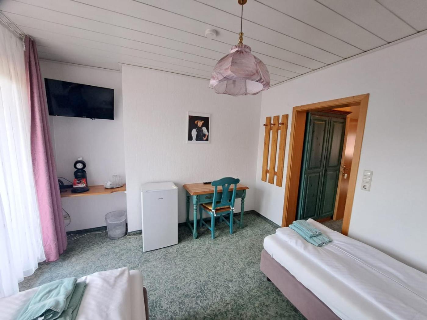 Doppelzimmer mit Balkon. This double room features a private bathroom, a tea and coffee maker, a wardrobe as well as a balcony. The unit offers 2 beds.