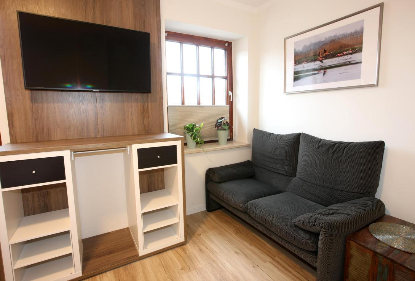 Zweibettzimmer. The twin room provides a high chair for children and parquet floors, as well as a private bathroom featuring a walk-in shower. Guests can make meals in the fully equipped kitchen that features a stovetop, a refrigerator and kitchenware. The twin room offers a tea and coffee maker, a dining area, a wardrobe, a flat-screen TV with cable channels, as well as ancourtyard view. The unit offers 2 beds.