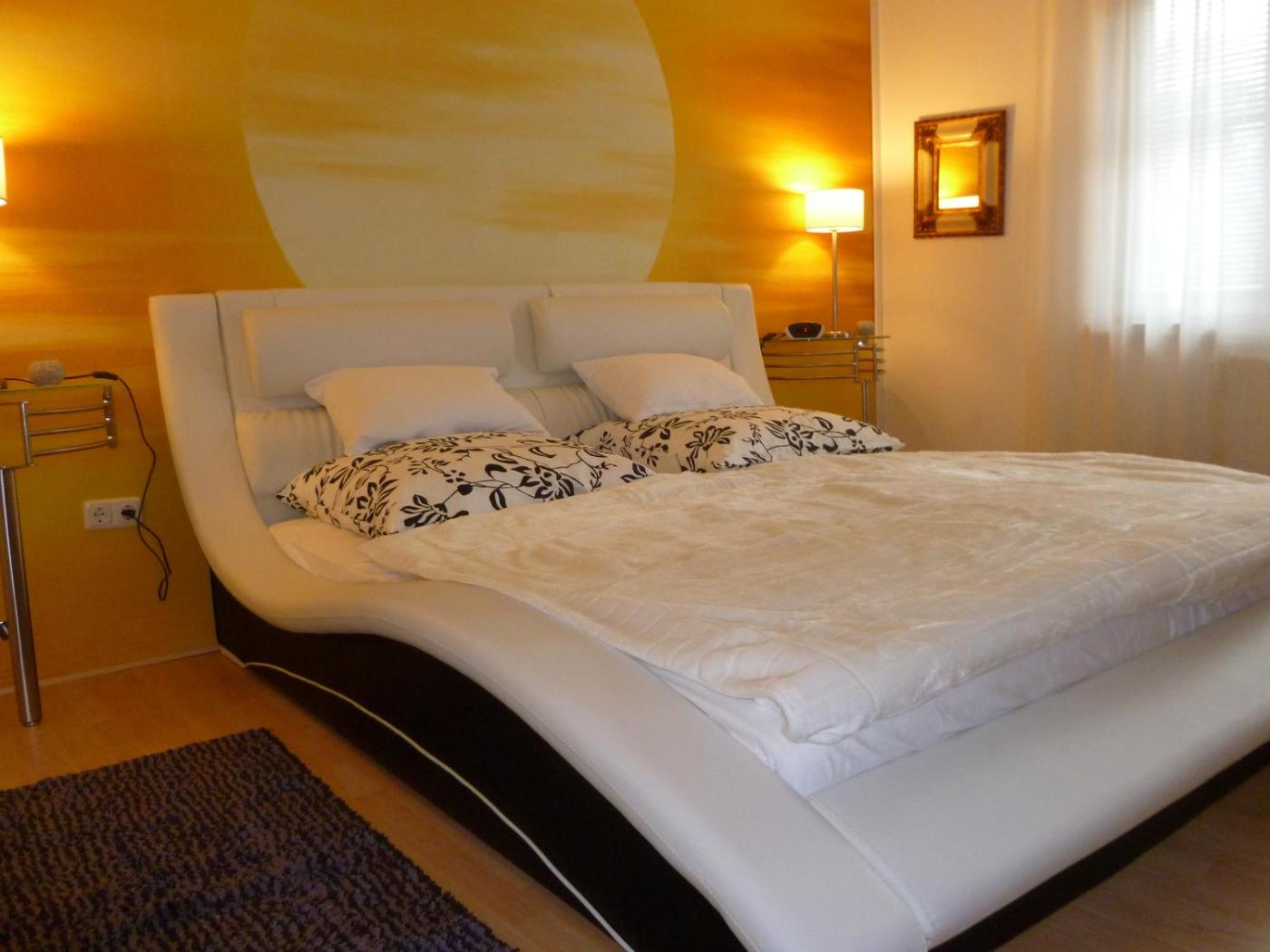 Apartment mit 2 Schlafzimmern, Balkon und Panoramablick (2-4 Erwachsene). Diese Ferienwohnung verfügt über 2 individuell gestaltete Schlafzimmer, einen Sitzbereich mit einem TV, eine Küche und einen eigenen Balkon. Sie genießen eine Aussicht auf die Berge, den Garten und das Kloster. Die Adresse der Ferienwohnung lautet: Mühlplatz 4, 37445 Walkenried. ;
