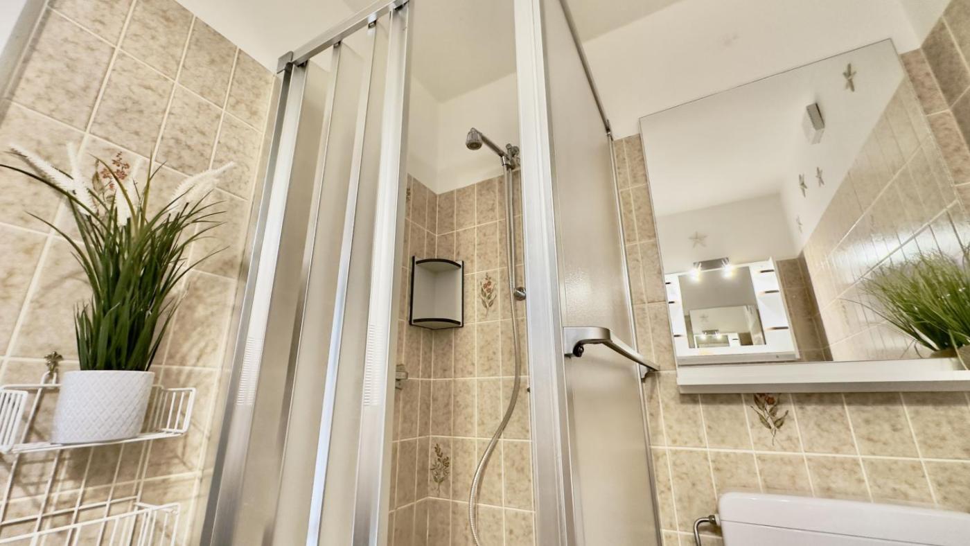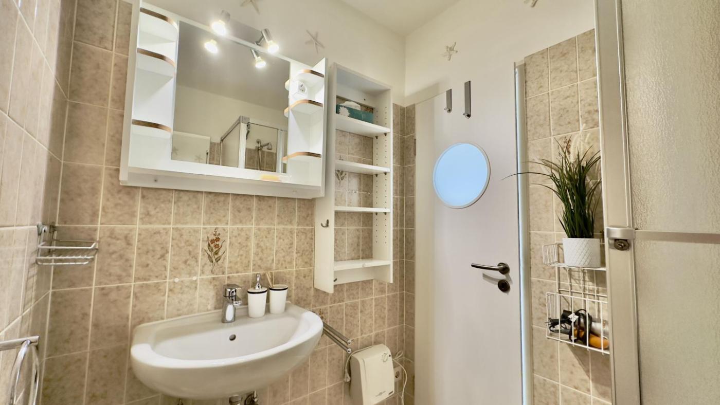 Apartment mit Balkon. This apartment is comprised of 1 living room, 1 separate bedroom and 1 bathroom with a shower and a hairdryer. In the kitchen, guests will find a stovetop, a refrigerator, kitchenware and a microwave. Featuring a balcony, this apartment also offers a coffee machine, a seating area and a TV. The unit offers 2 beds.