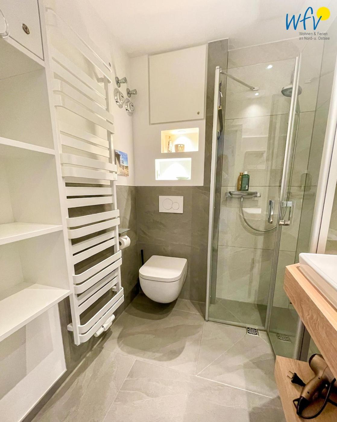 Apartment mit Meerblick. This apartment is comprised of 1 living room, 1 separate bedroom and 1 bathroom with a shower and a hairdryer. The well-fitted kitchen features a stovetop, a refrigerator, a dishwasher and an oven. The apartment offers a washing machine, a coffee machine, a seating area, a TV, as well as sea views. The unit offers 3 beds.