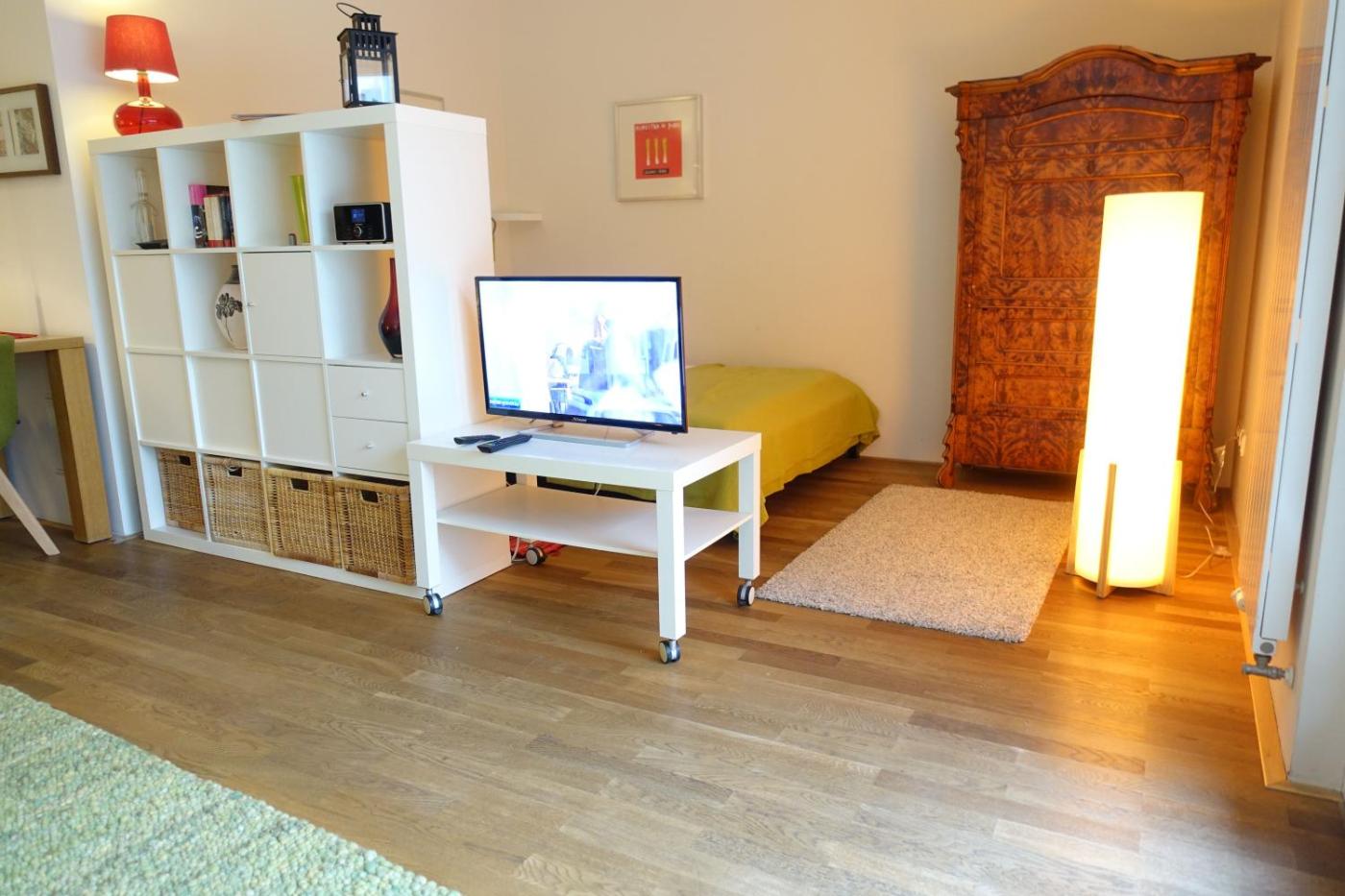Diese Ferienwohnung besteht aus 1 Schlafzimmer, einem Wohnzimmer, einer voll ausgestatteten Küchenzeile mit einem Kühlschrank und einer Kaffeemaschine sowie 1 Badezimmer mit einer Dusche. Es gibt einen Flachbild-TV.