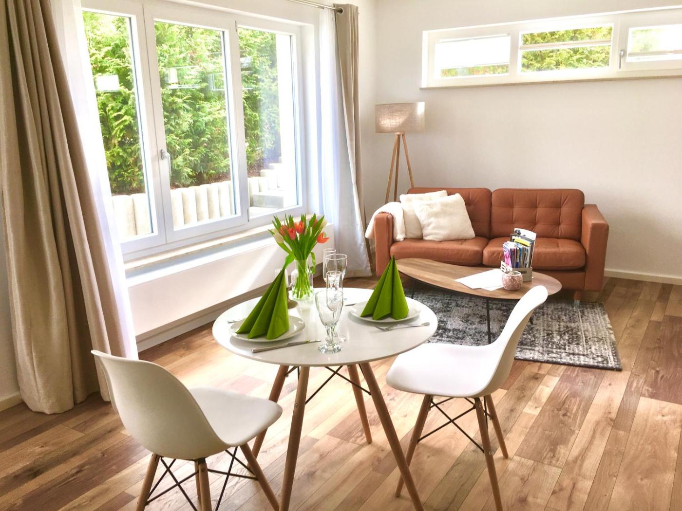 Apartment 1. Diese Ferienwohnung verfügt über einen eigenen Eingang, 1 Wohnzimmer, 1 separates Schlafzimmer sowie 1 Bad mit einer Dusche und einem Haartrockner. In der komplett ausgestatteten Küche erwarten Sie ein Kochfeld, ein Kühlschrank, ein Geschirrspüler und Küchenutensilien. Darüber hinaus bietet Ihnen die Ferienwohnung eine Terrasse mit Gartenblick, Tee- und Kaffeezubehör sowie einen Flachbild-Sat-TV. In dieser Wohneinheit befindet sich 1 Bett.
