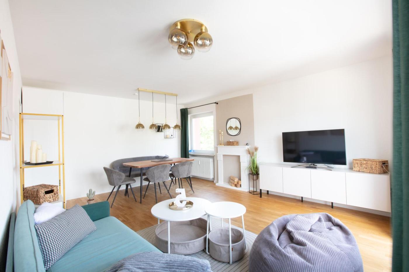 Apartment. This spacious apartment comprises 1 living room, 2 separate bedrooms and 1 bathroom with a shower. Meals can be prepared in the well-fitted kitchen, which comes with a stovetop, a refrigerator, a dishwasher and kitchenware. The apartment provides a washing machine, soundproof walls, a coffee machine, a flat-screen TV with satellite channels, as well as city views. The unit offers 3 beds.