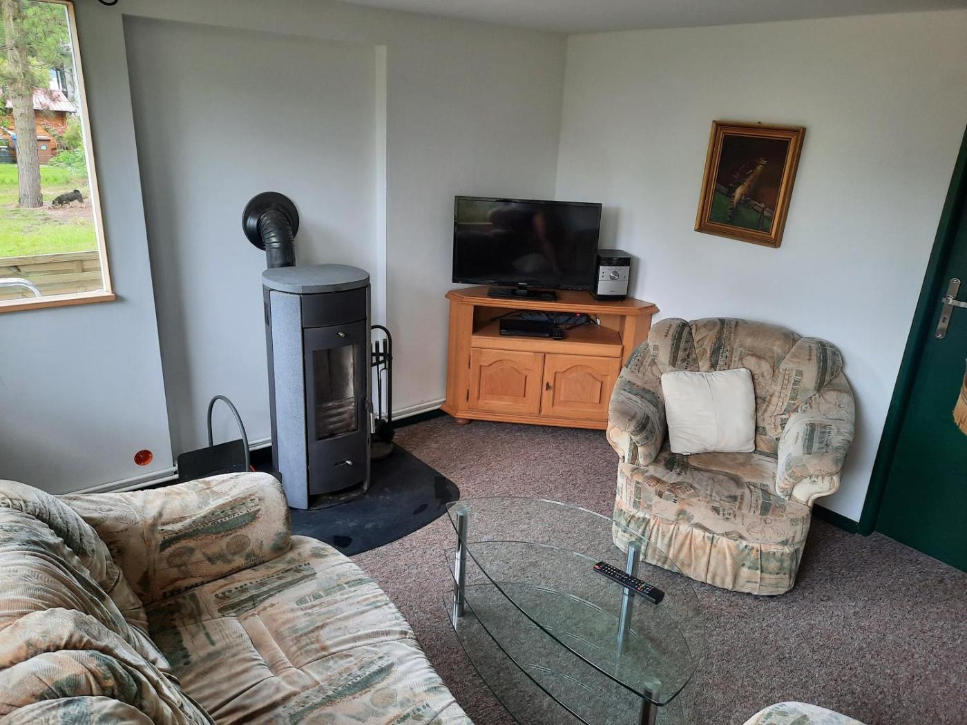 Haus mit 2 Schlafzimmern. This holiday home features a fireplace. Featuring a private entrance, this holiday home comprises 1 living room, 2 separate bedrooms and 1 bathroom with a shower and a hairdryer. Guests will find a stovetop, a refrigerator, a dishwasher and kitchenware in the well-fitted kitchen. The holiday home also provides guests with a barbecue. Boasting a terrace with garden views, this holiday home also provides a washing machine and a flat-screen TV with satellite channels. The unit offers 3 beds.