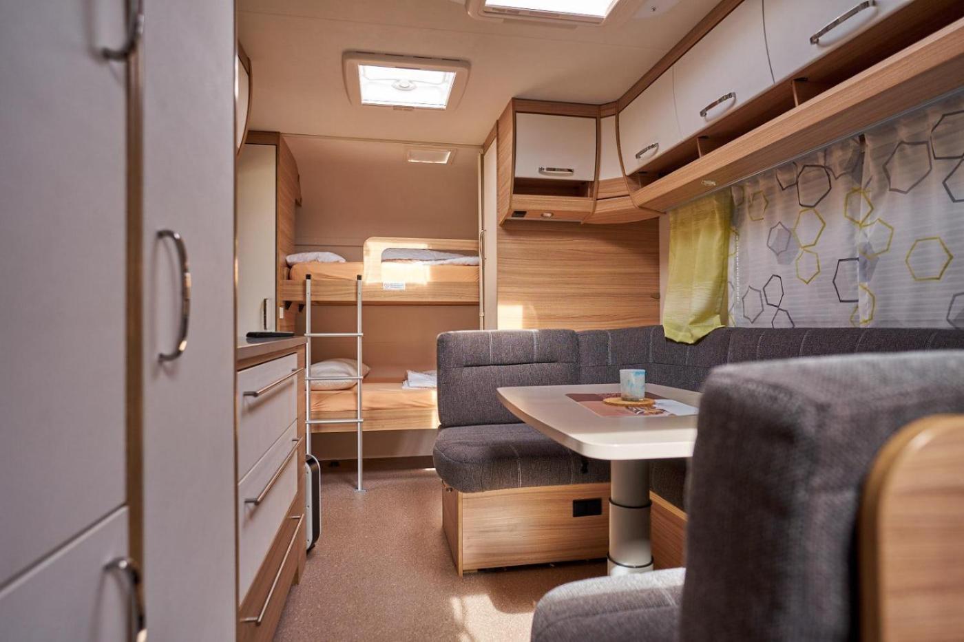 Mobilheim mit Bad. Die Wohneinheit ist mit 3 Betten ausgestattet. ;