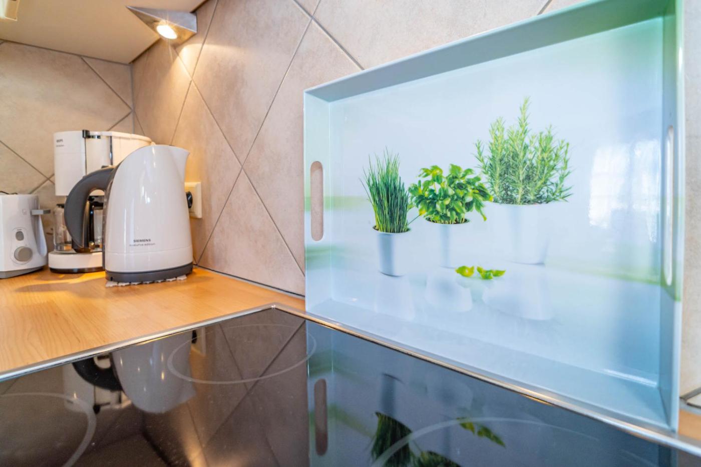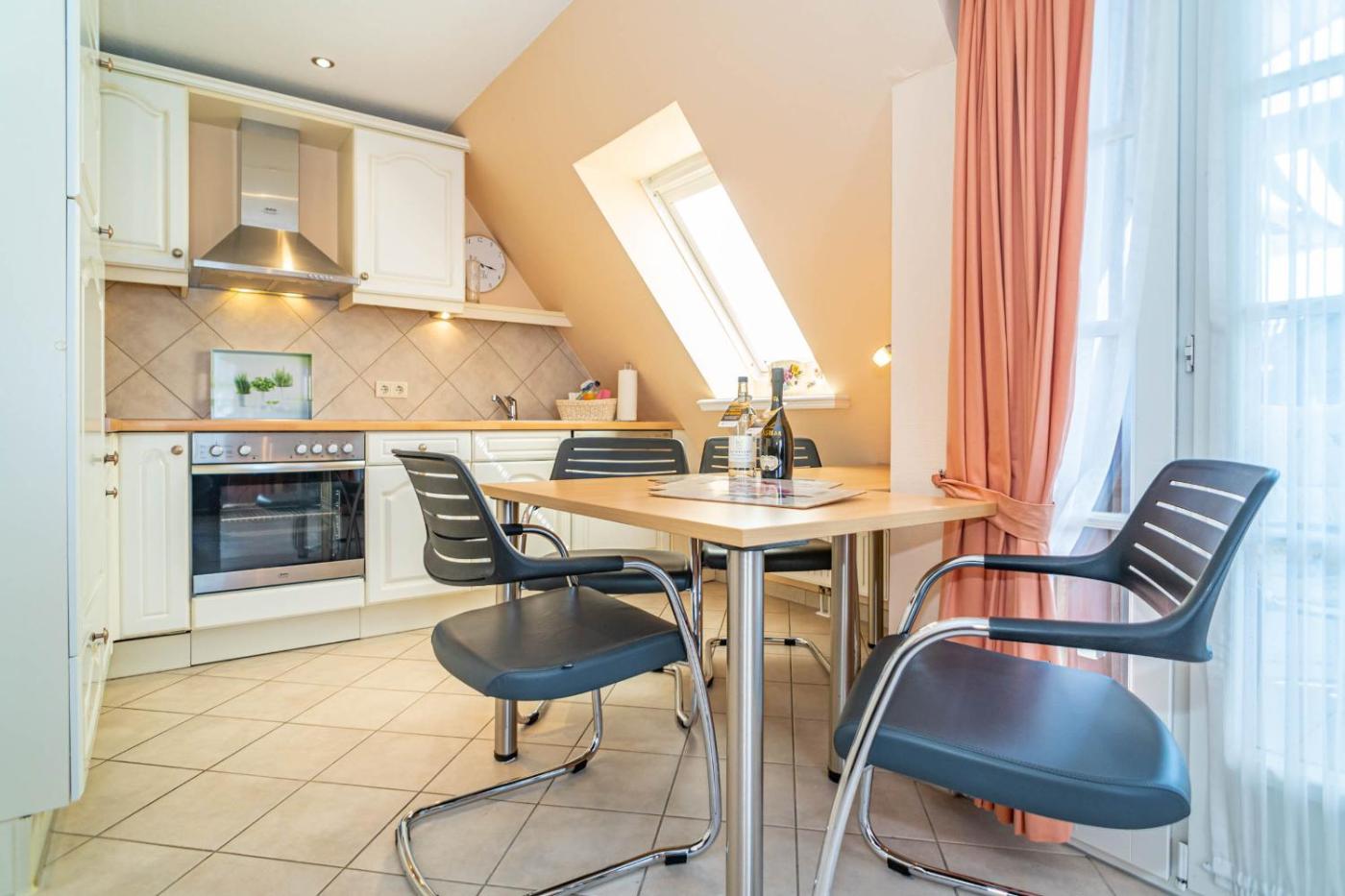 Apartment mit Balkon. This spacious apartment features a kitchen, a seating area, 2 separate bedrooms and 1 bathroom with a shower and a hairdryer. In the well-fitted kitchen, guests will find a refrigerator, a dishwasher, kitchenware and an oven. Boasting a balcony, this apartment also features a washing machine, a coffee machine and a TV. The unit has 2 beds.