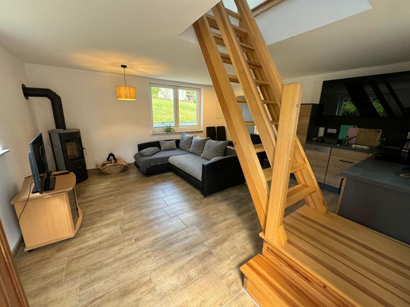 Haus mit 1 Schlafzimmer. The holiday homes kitchen is available for cooking and storing food. The holiday home provides heating and garden views. The unit offers 3 beds.
